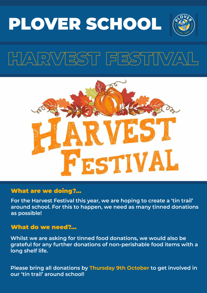We are kindly asking for donations in aid of the harvest festival. We aim to create a ‘tin trial’ around school of all donations and then gift them to the Plover pantry- a much needed resource!