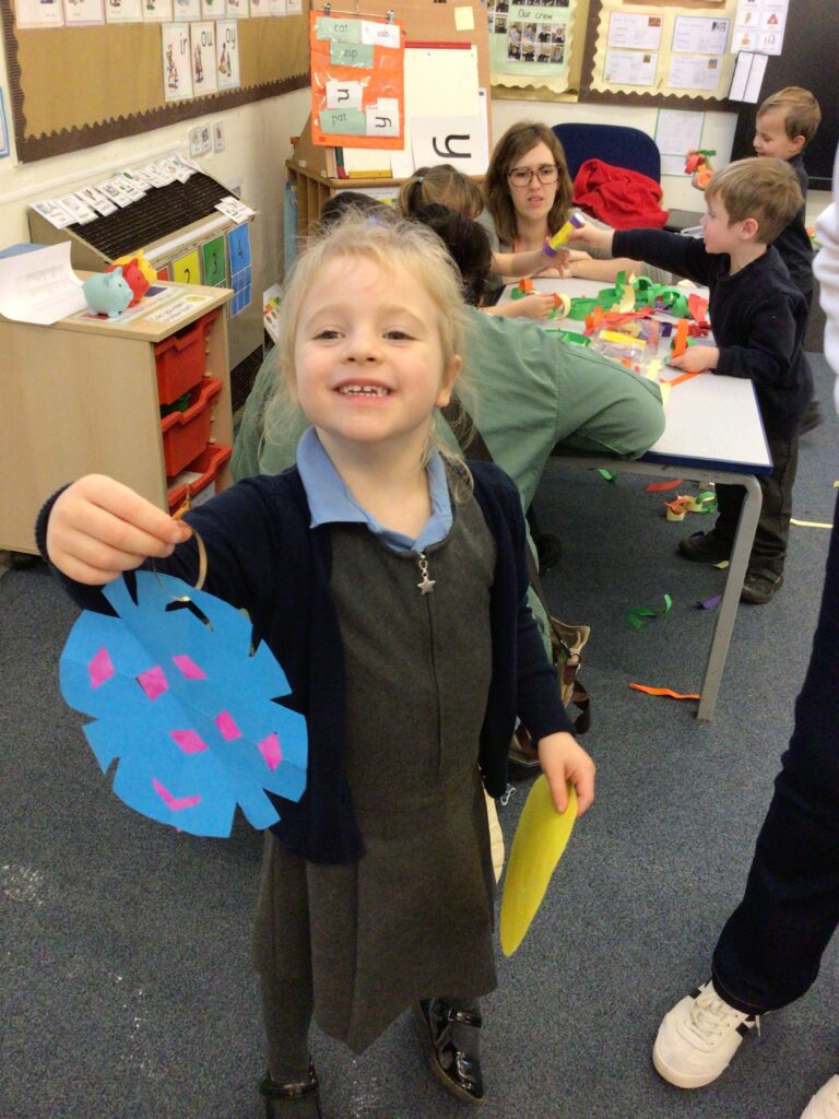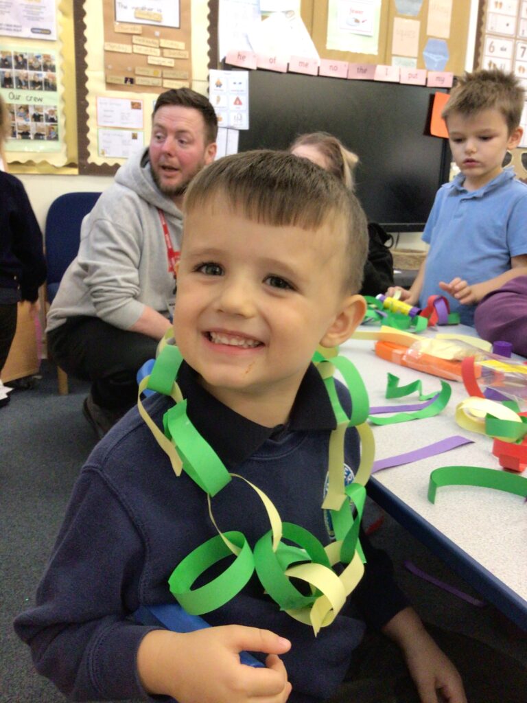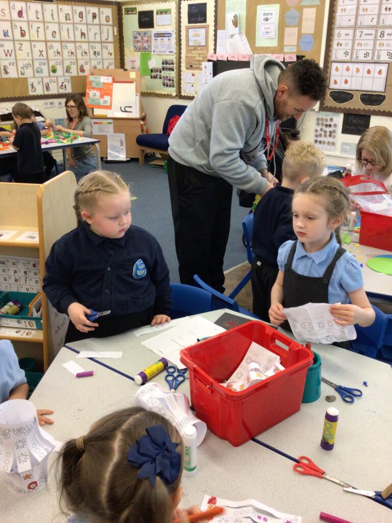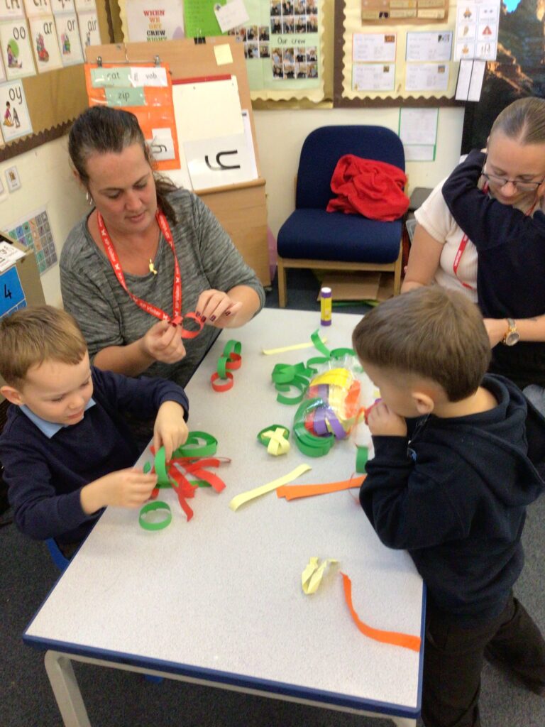 Thank you to all the families who came to join us today. We had lots of fun making sweets, creating window catchers, lanterns and firework pictures. We had lots of paper chains too and some children have made them ready for their Christmas trees.