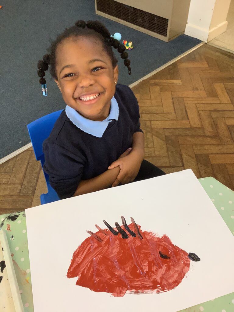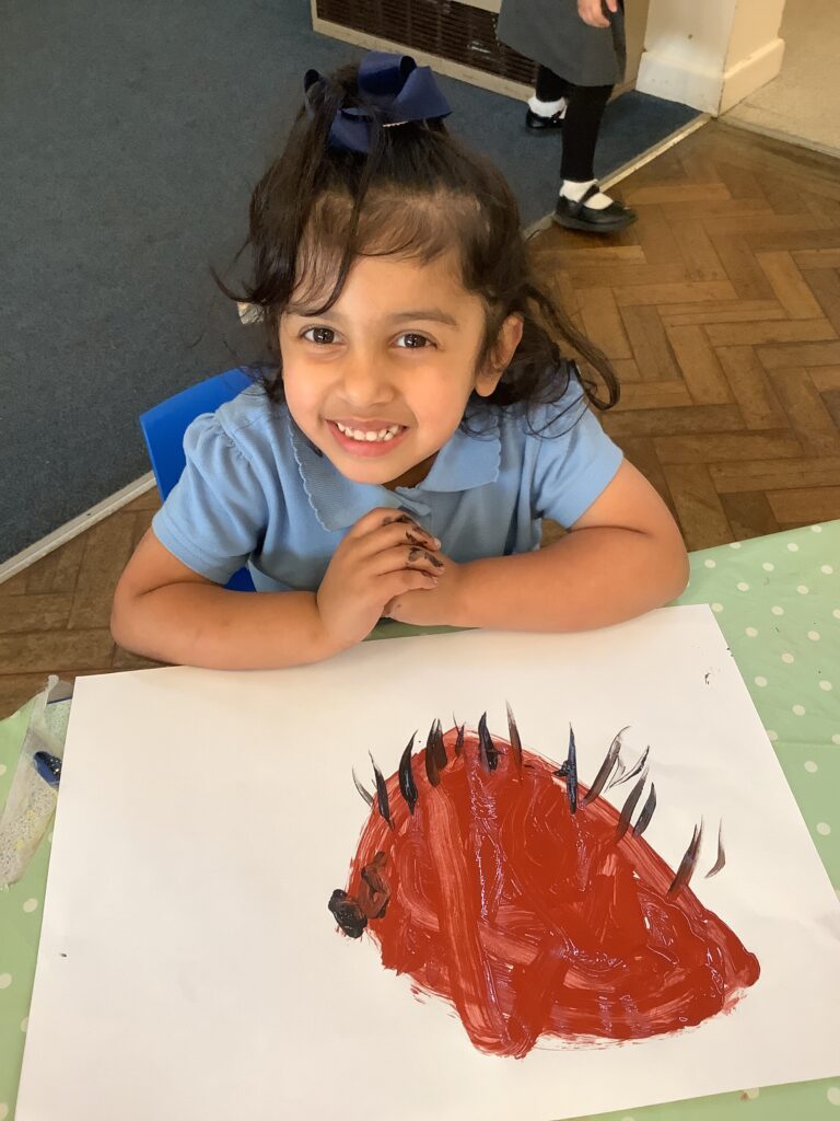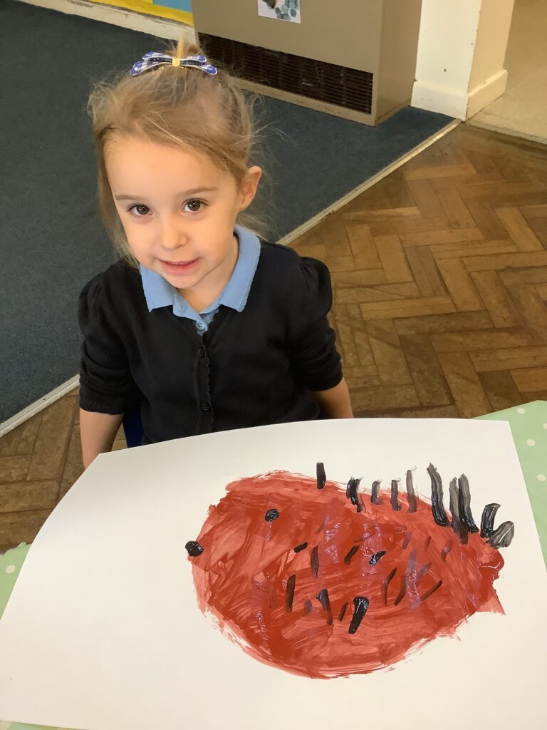 This week F1 have been learning all about hedgehogs. We used a variety of different materials to create our own hedgehogs including paint, glue/leaves and clay. There has been some absolutely beautiful artwork, all the children have worked so hard!