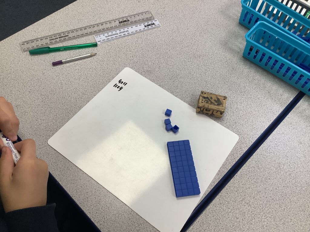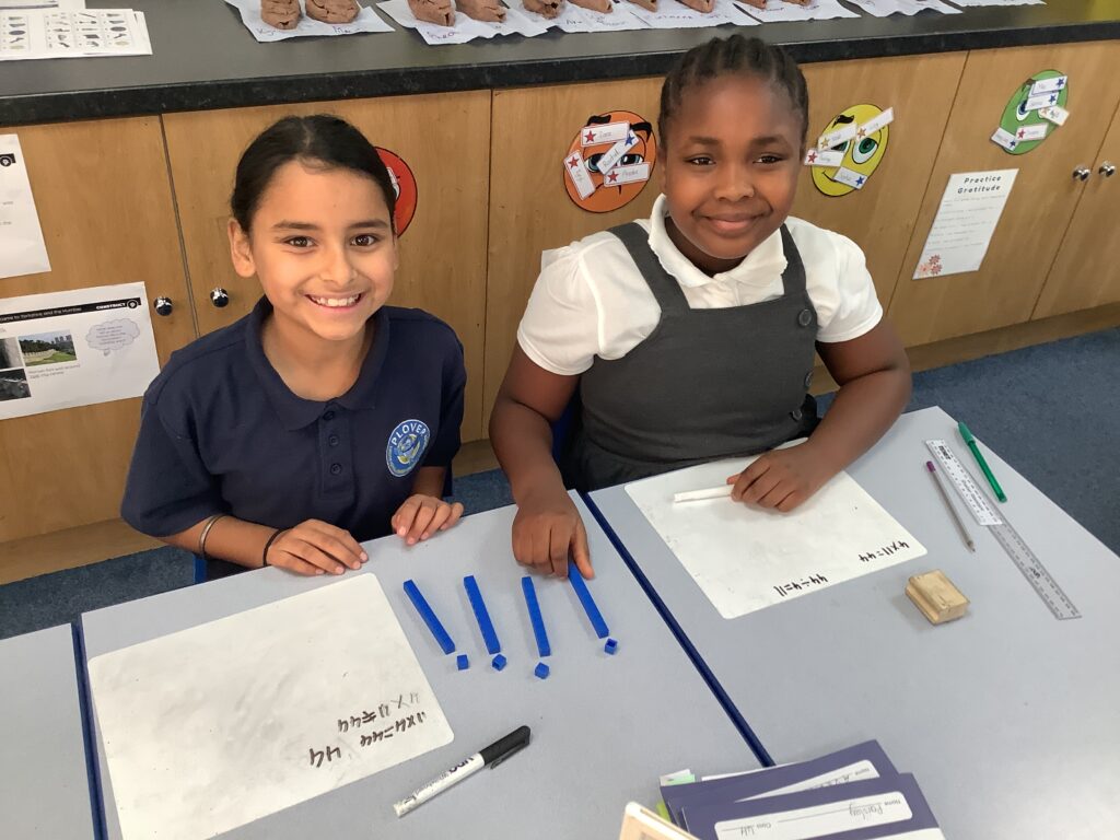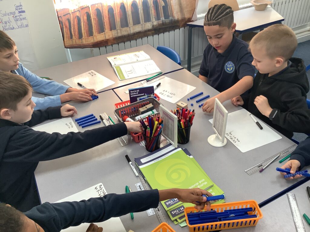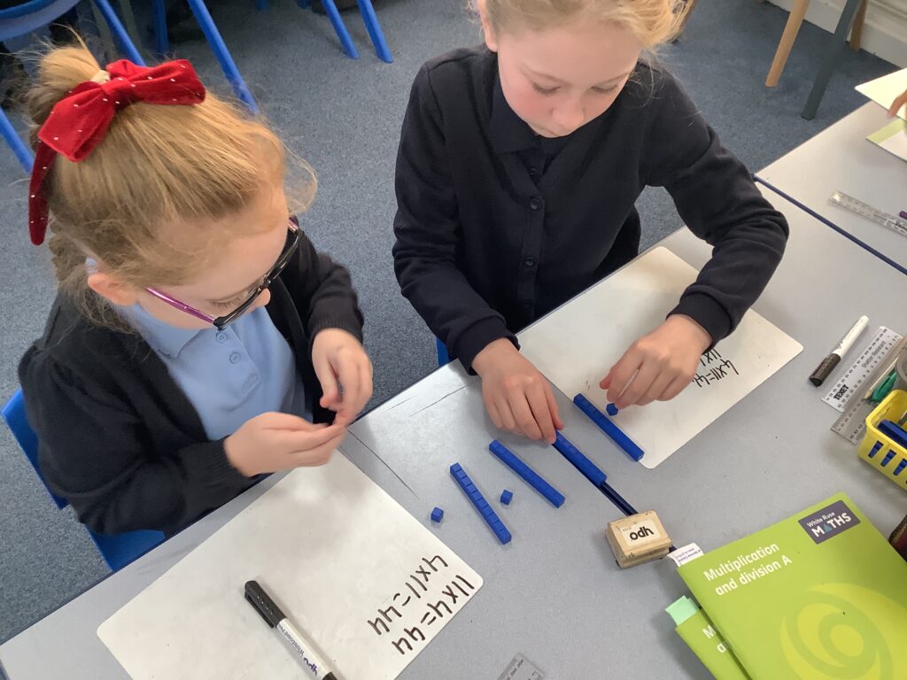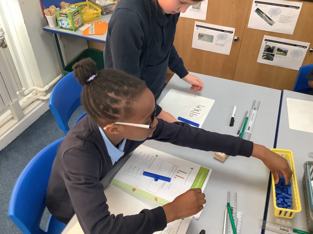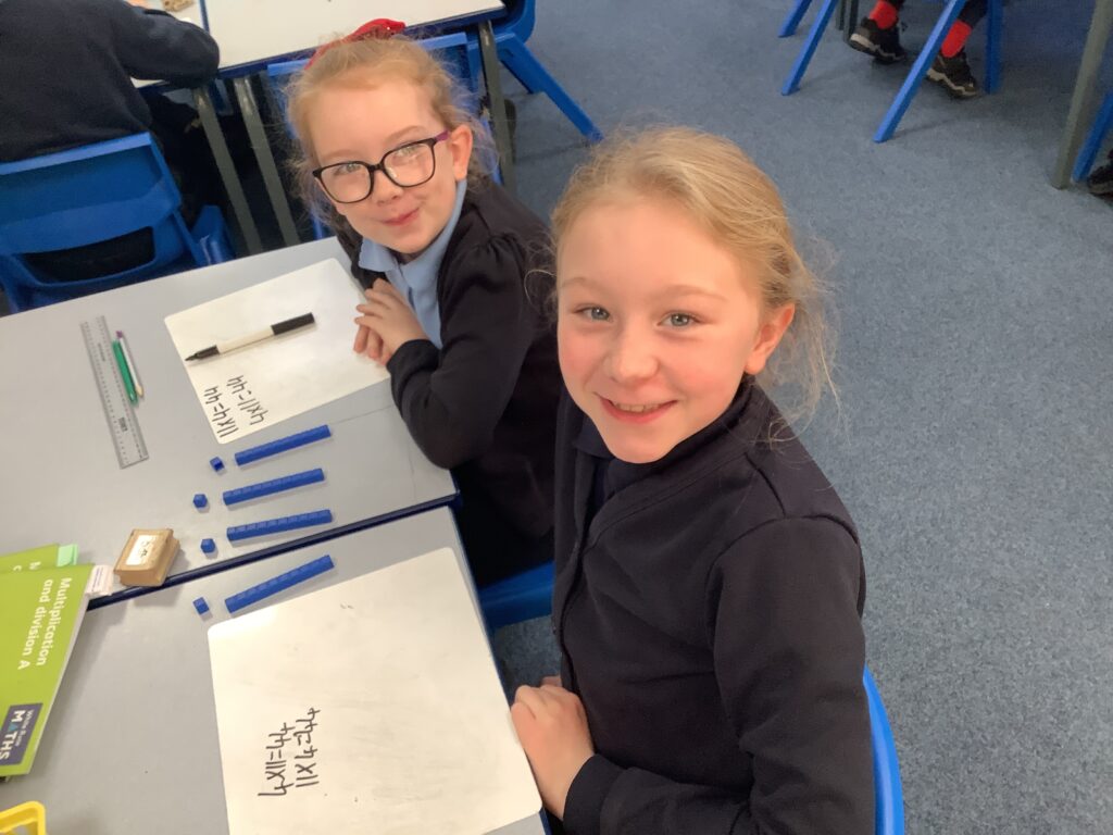 Year 4 are making some marvellous strides with their use of manipulatives to support the building of their knowledge of multiplications facts and their inverse division facts.