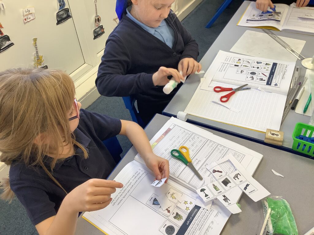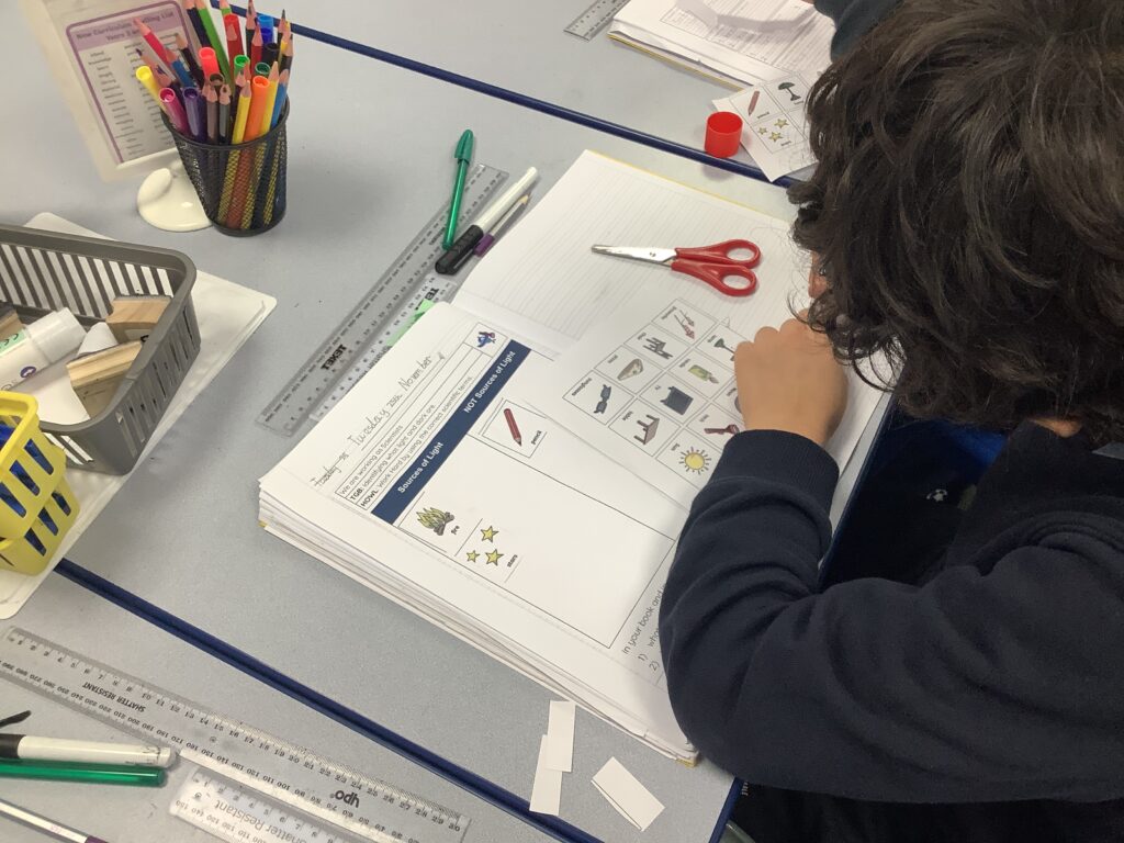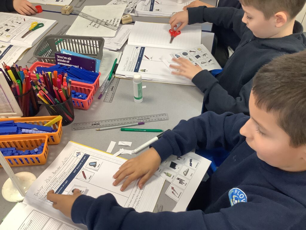 Well done 4H! Most of us can sort sources of light from non-sources of light! I loved watching you sort these cards and listening to your conversations about why you were placing items in the columns you placed them in. We just need to remember that the Moon is NOT a source of light. It simply reflects the sun’s light down to us on planet Earth which is why we can see it in different shapes at different times of the month. If it was its own light source, it would look the same all of the time!