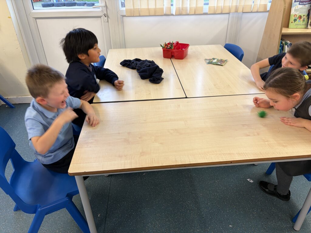 To help us explore this idea, we played the Pom Pom Game — a fun and simple activity that encourages deep breathing. As we took slow breaths in and out, we watched the pom poms move gently, helping us to stay focused and relaxed. There were lots of smiles (and a few giggles!) as we learned that being calm and still can also be great fun.
