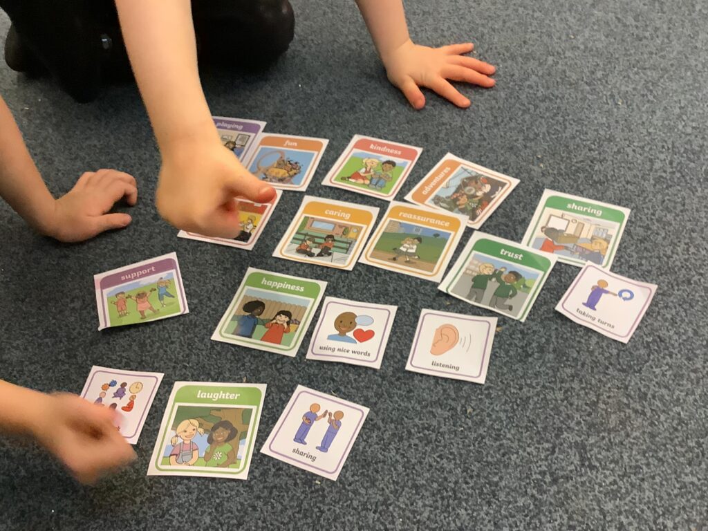 Today, we could come to school in odd socks to celebrate diversity and to remind us that it is okay to be different and that ‘We Are Kind’ at Plover. We remembered all the things that make a good friend from our crew session on friendship last week. We then saw a video of a story about a little boy who was bullied. Luckily, he had a kind friend who made him feel happy. We talked about how being kind makes you feel good too. We went round the circle and said something kind to the person to our left. Everybody smiled when they were listening and talking. Being kind makes everyone feel good!