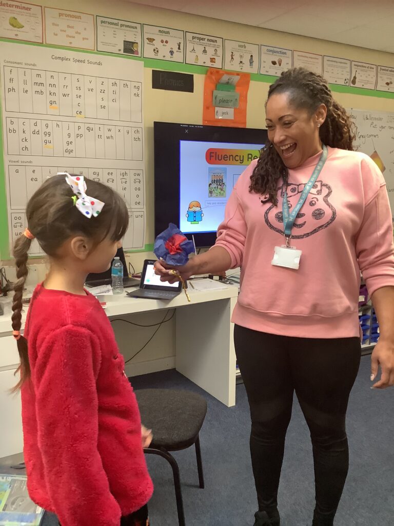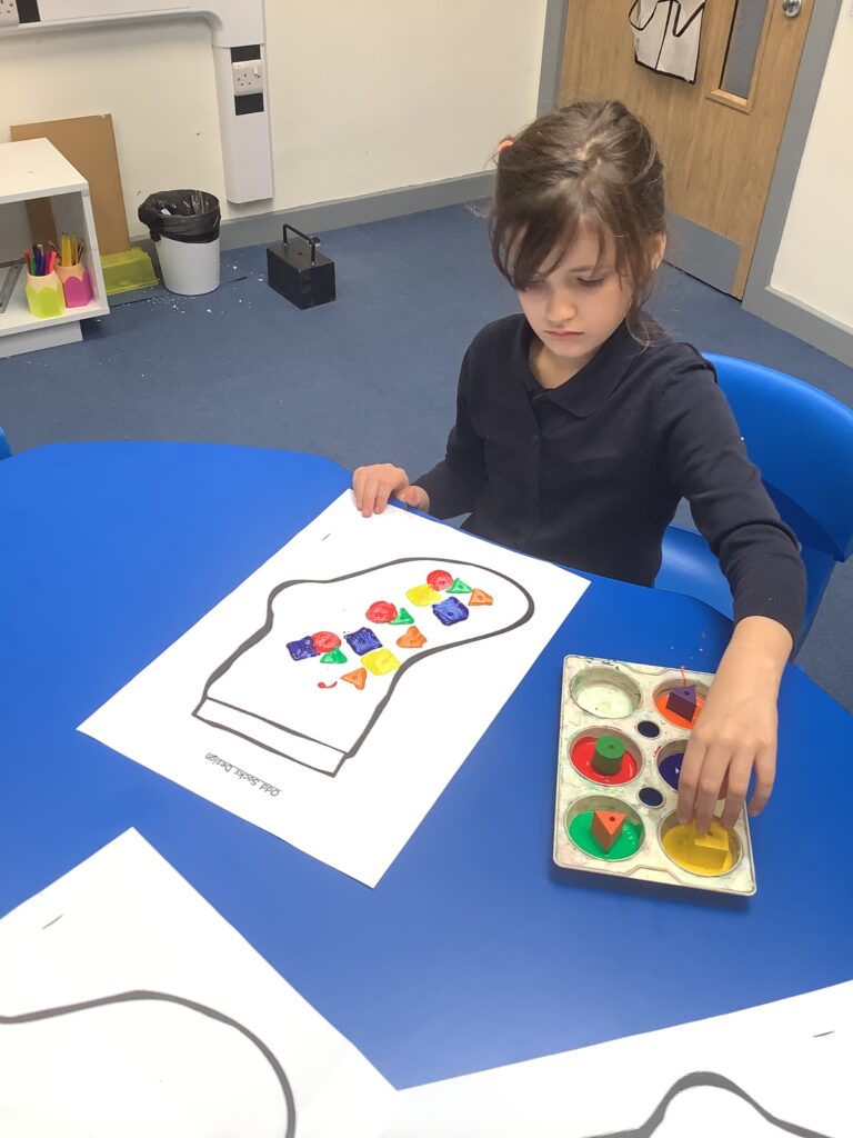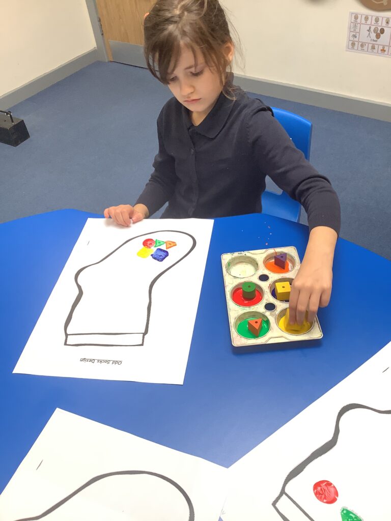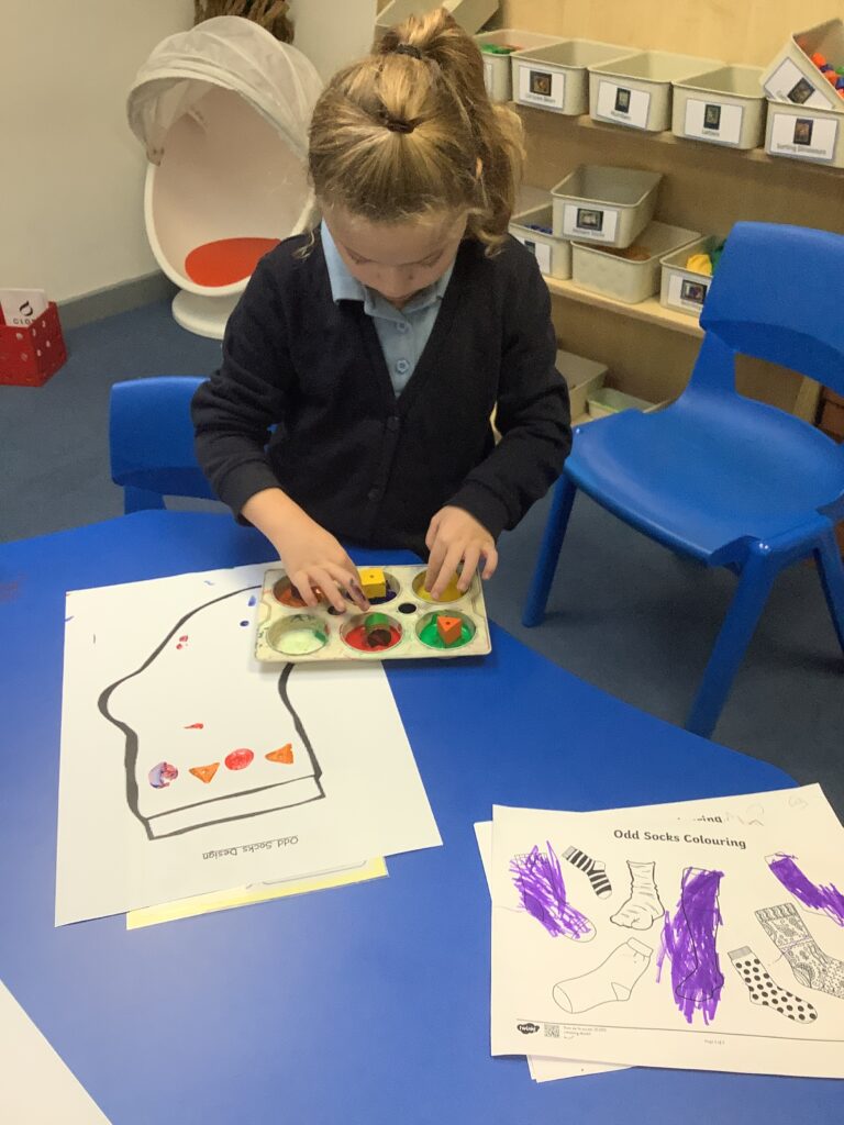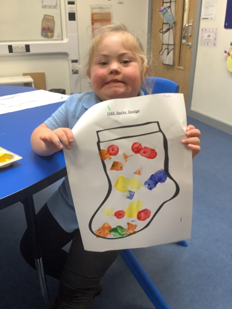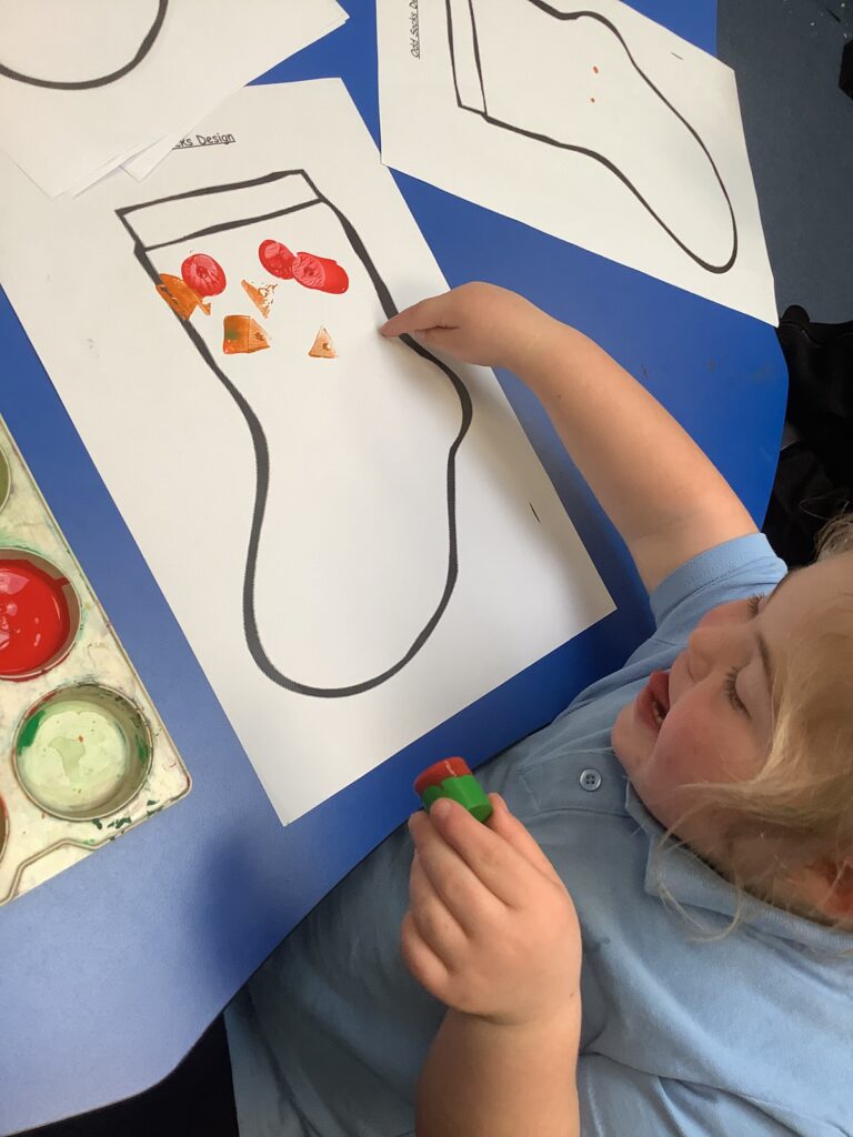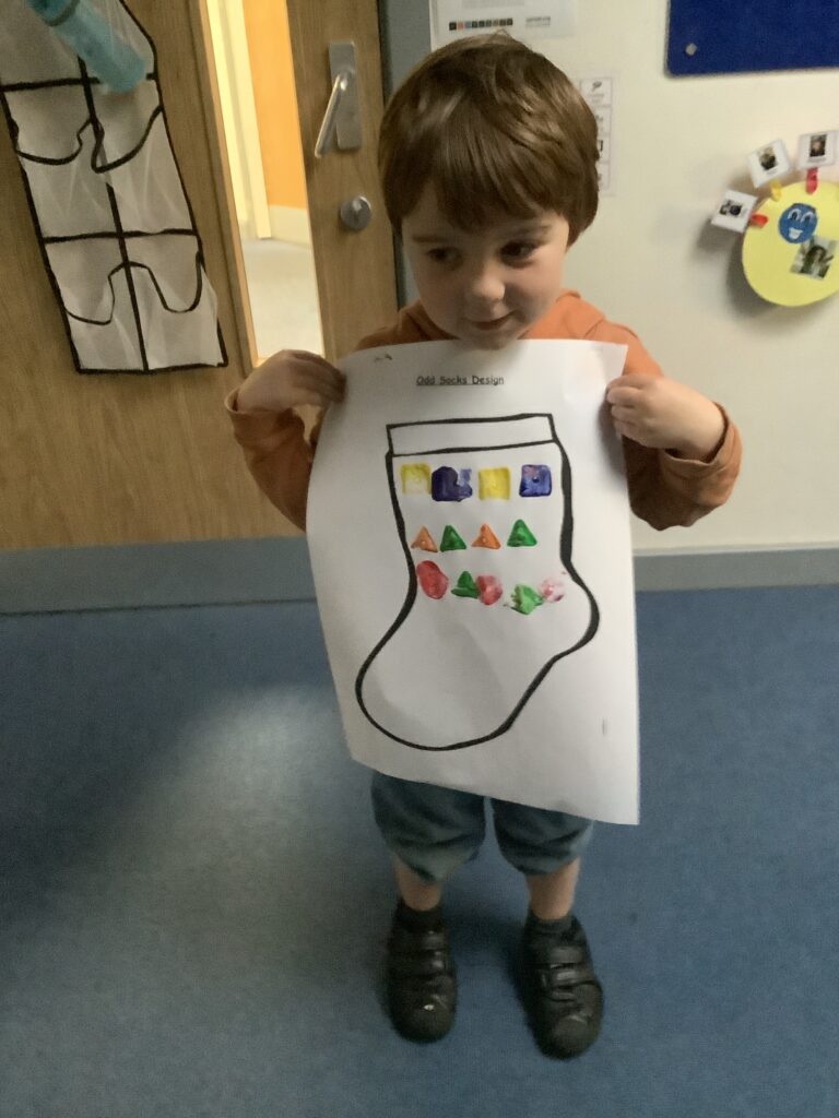 We started off anti-bullying week by celebrating Odd Sock day. For this we did a sponsored walk on the playground and we then designed our own odd socks by printing repeating patterns. We explored turn taking activities within our play and we demonstrated kindness by making flowers and delivering them to teachers around school; brightening up their day.