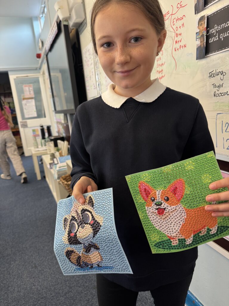 Super Skyla has completed some stunning diamond artwork at home. She was so excited to show us this morning- how beautiful! Well done Skyla!