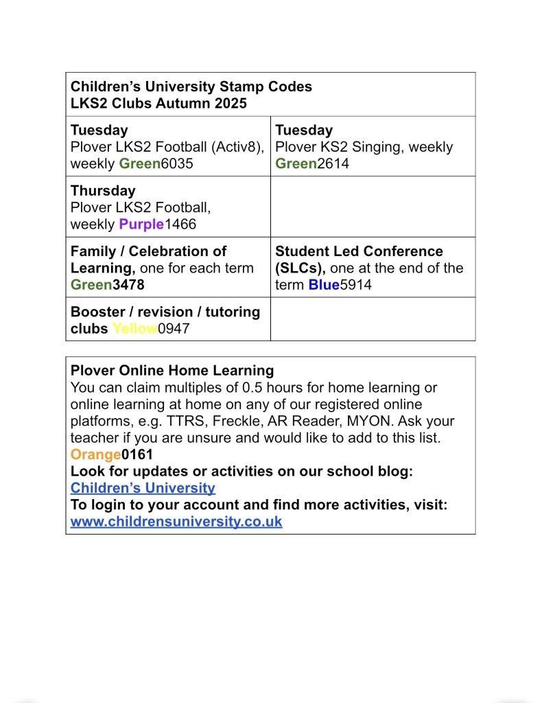 Here are the very belated (sorry!) codes for the Autumn 2025 Term.