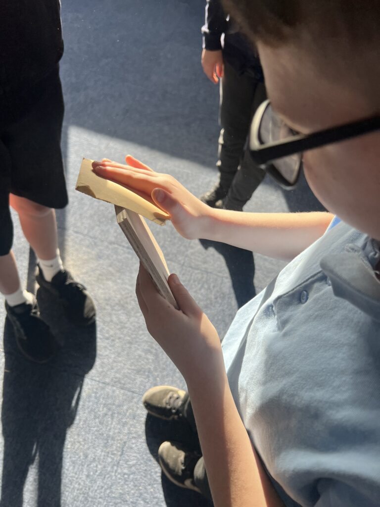The children have been working to create a GFOL landscape piece of art. They used their knowledge of primary and secondary colours to create a fire effect background. They then created silhouette houses to create the houses from Pudding Lane.