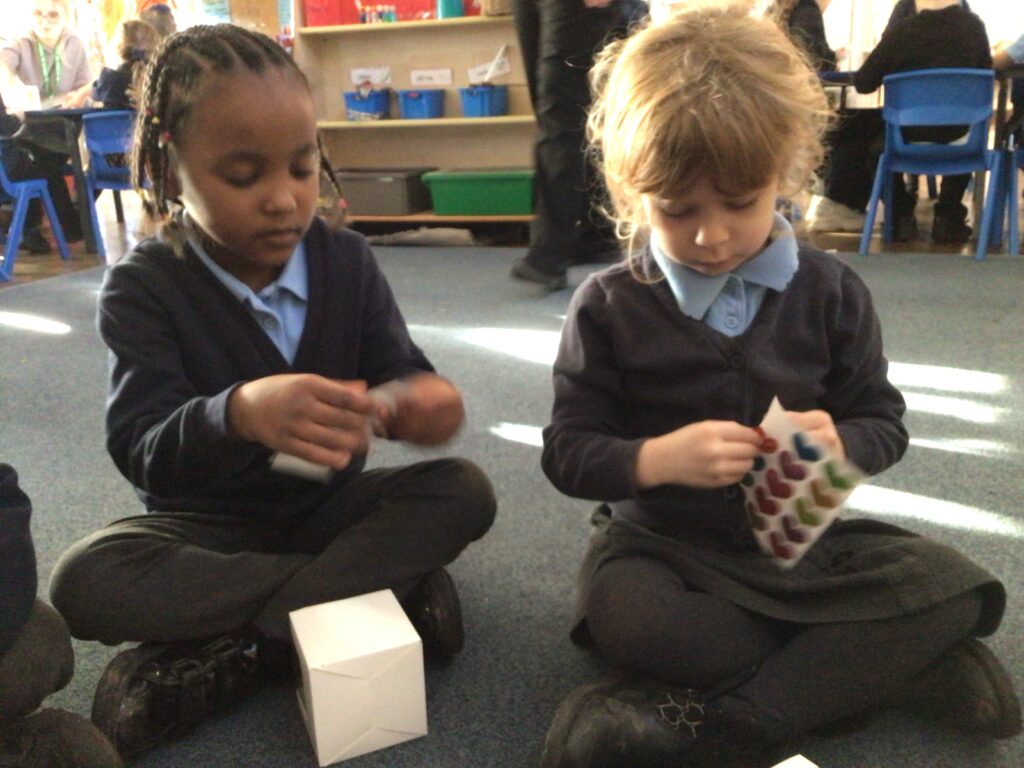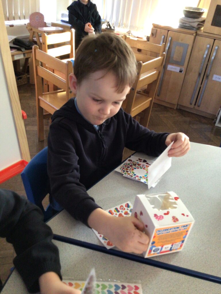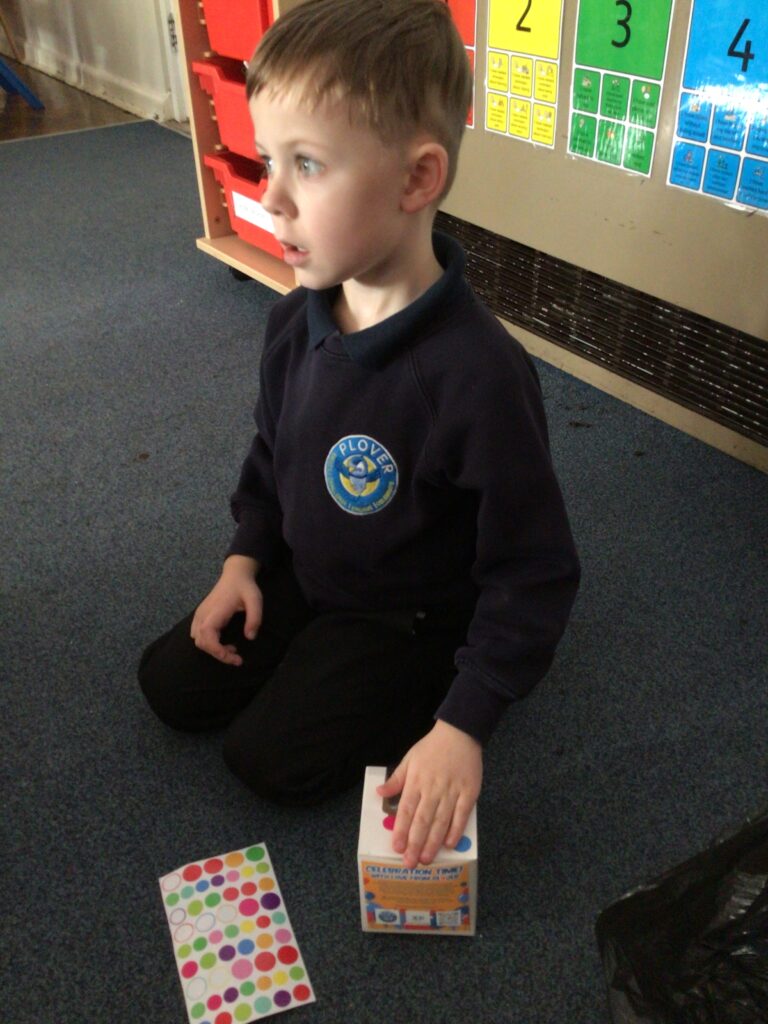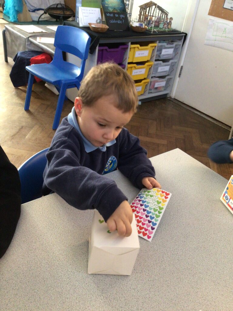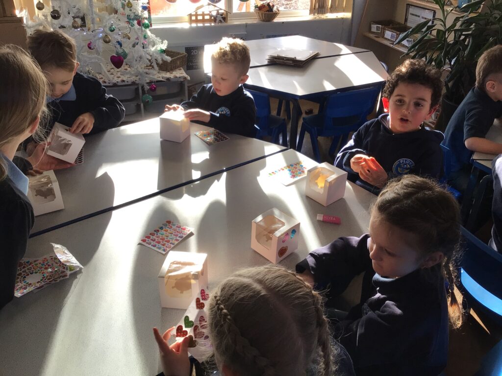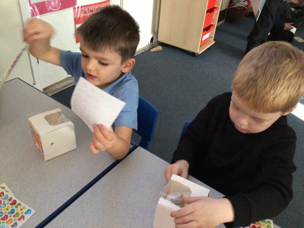 Today we talked about who will be coming to our celebration of learning and what we need to do to prepare. The children decorated their boxes ready for the cupcakes.