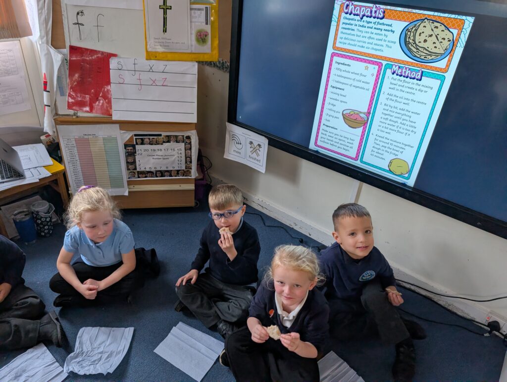 Today we made chapatti – just like from our key text Chapatti Moon. However, our Chapatti stayed in the pan and didn’t roll away. Thank you Mrs Williams (aka Mrs Kapoor) for helping us make and cook our delicious chapattis. #LovePlover