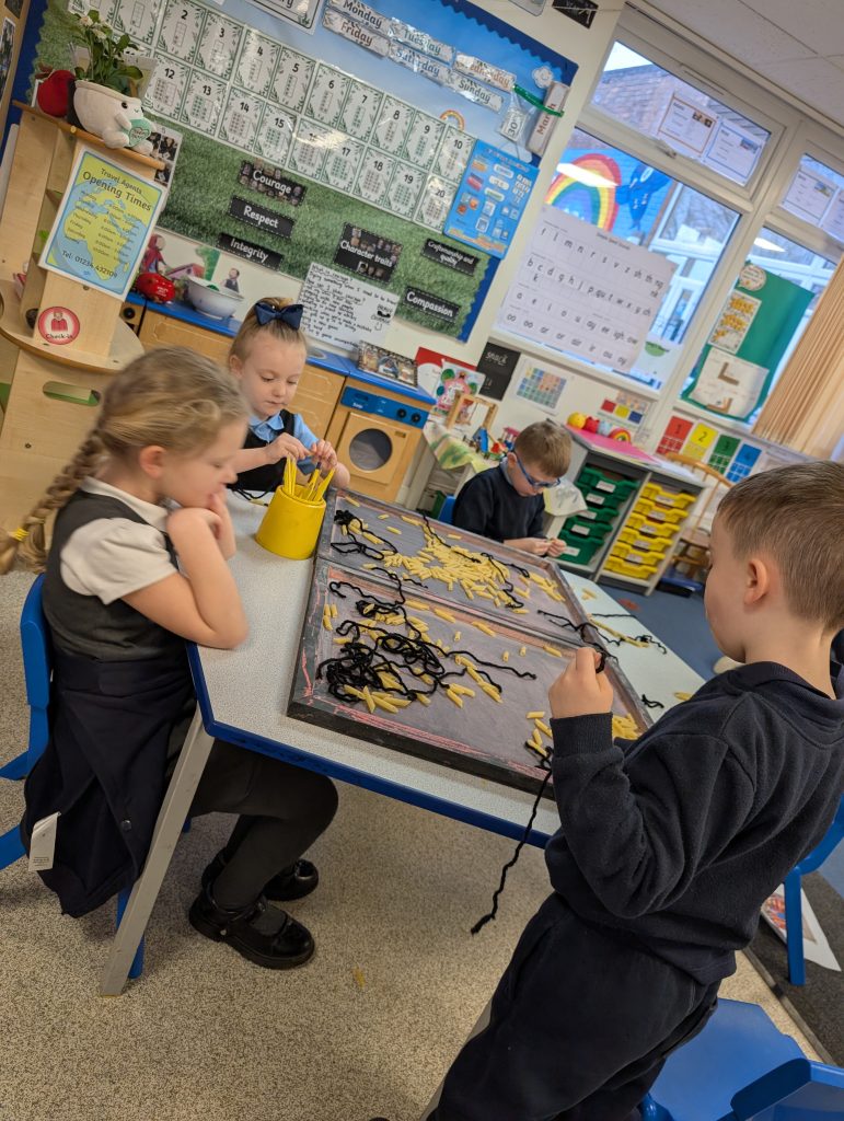 In provision, these children chose to work hard and develop their fine motor skills to make some African inspired pasta necklaces. I praised that they showed the character trait of real craftsmanship and quality to create their necklaces. #LovePlover