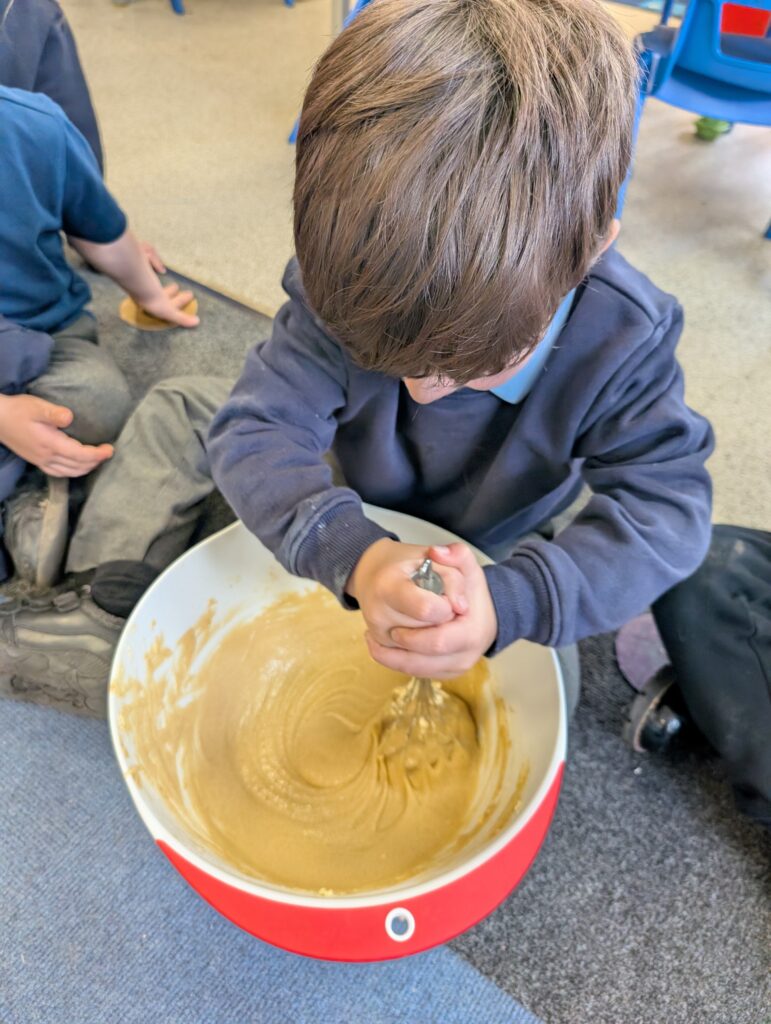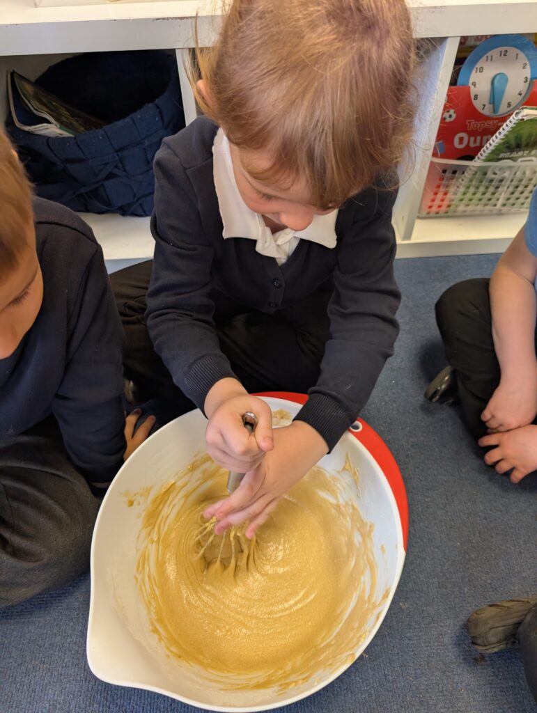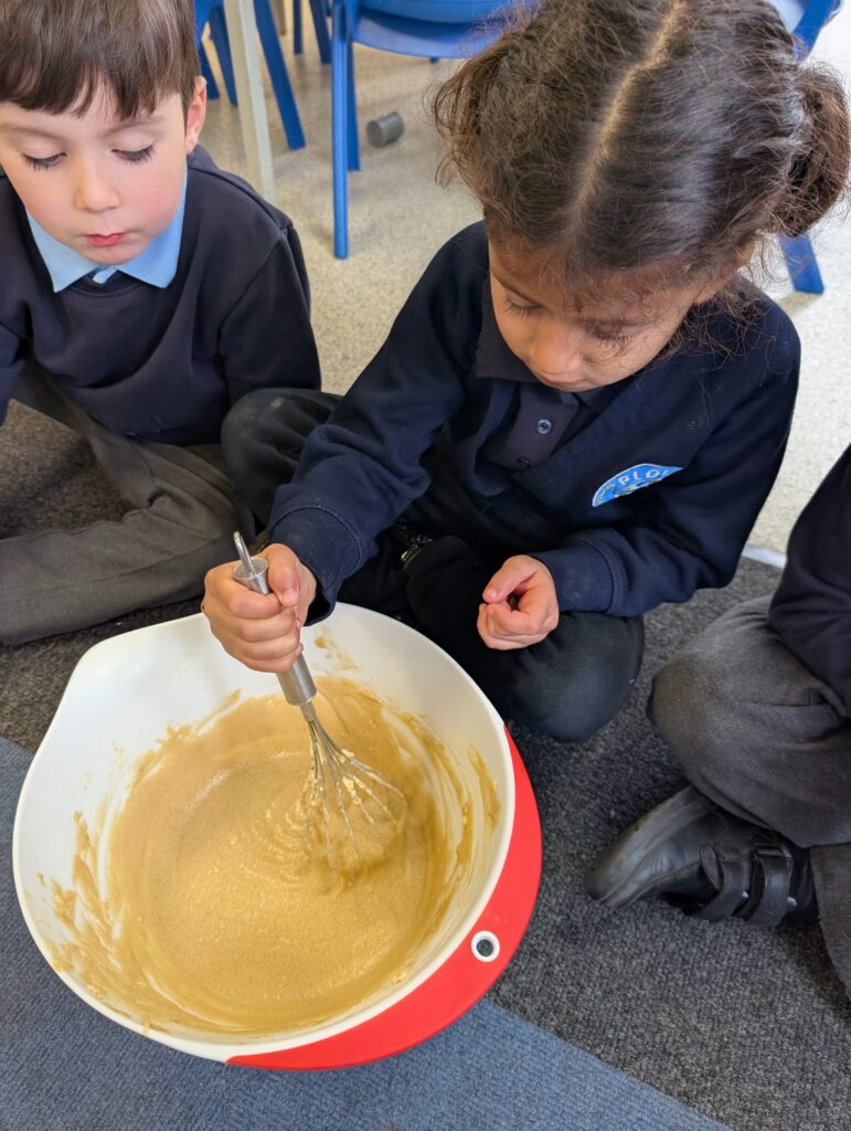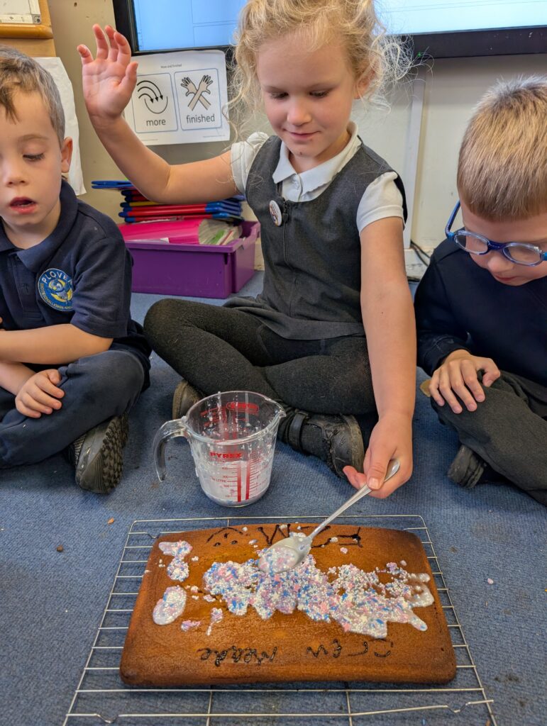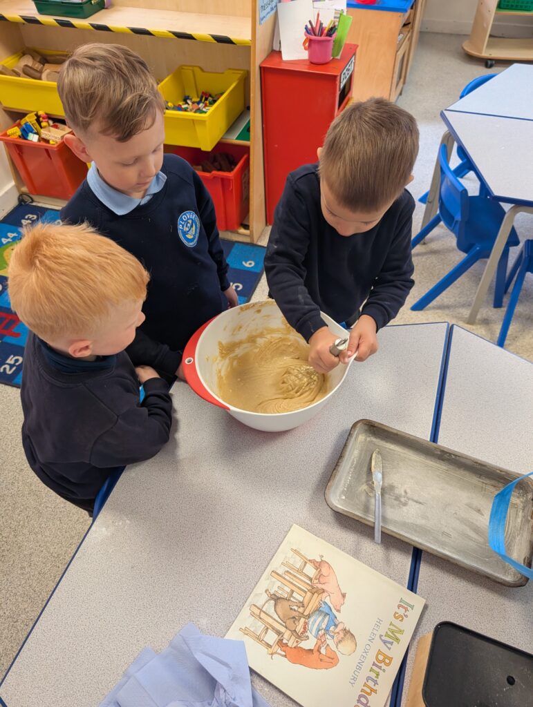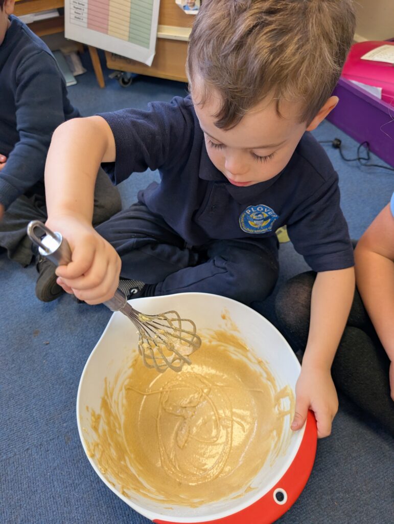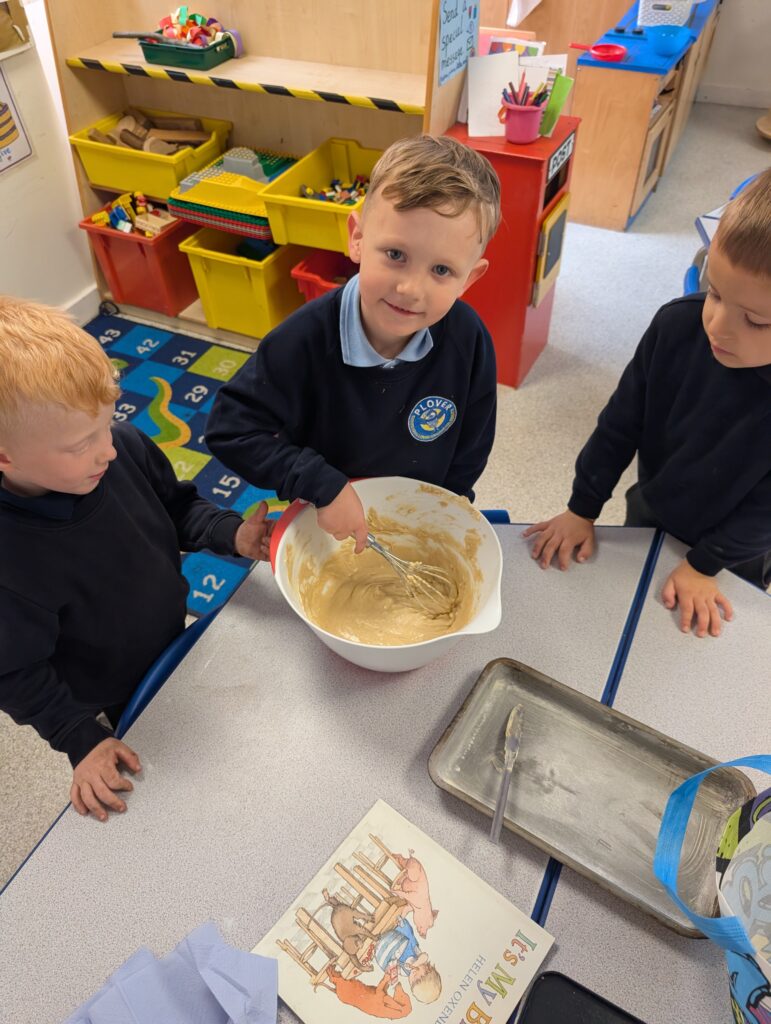 Having had our expert baker in this morning teach us how to bake a cake. We made our own cake this afternoon. The children used some brilliant descriptive language for the mixture: squidgy, slimy, sloppy, gooey. Then we popped it in the oven and we’re happy with the outcome! #LovePlover