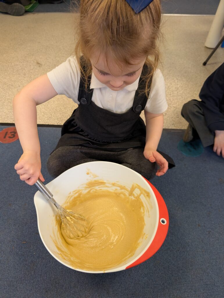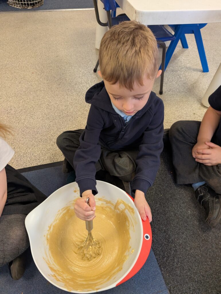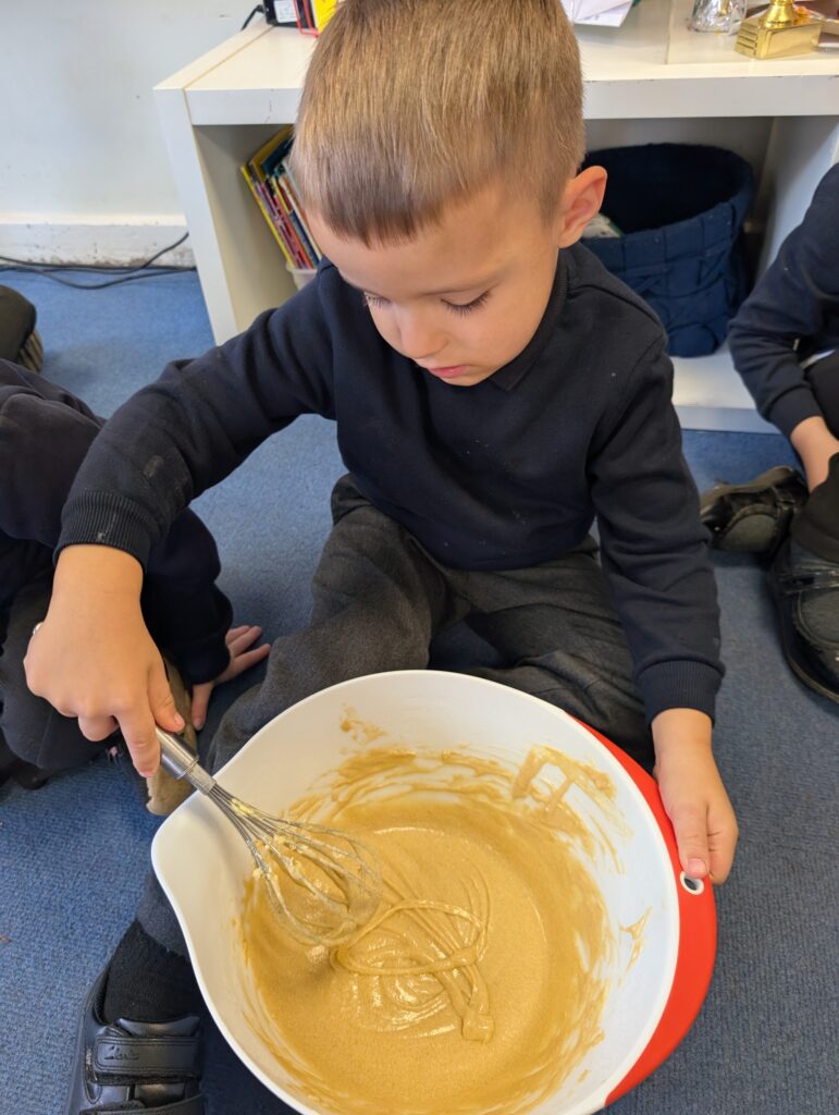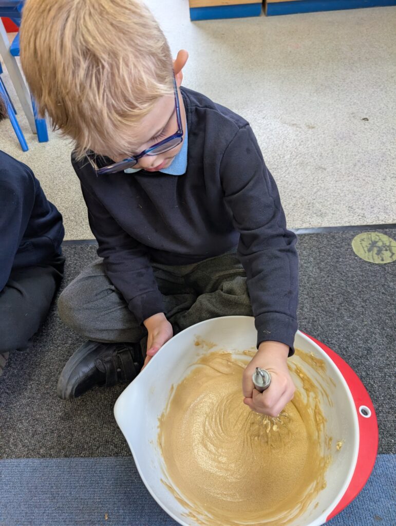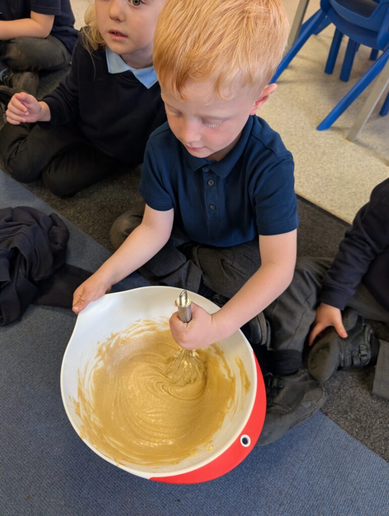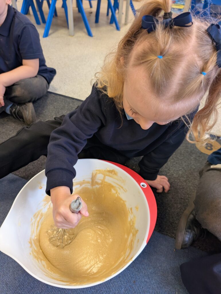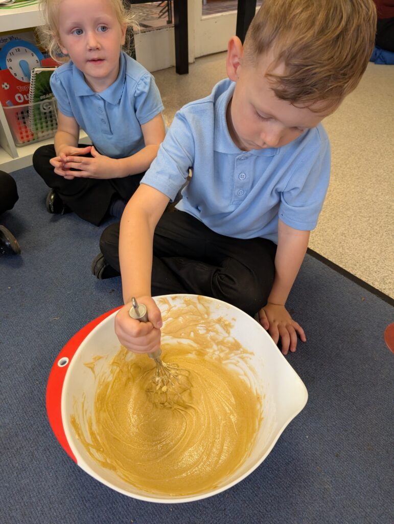 Having had our expert baker in this morning teach us how to bake a cake. We made our own cake this afternoon. The children used some brilliant descriptive language for the mixture: squidgy, slimy, sloppy, gooey. Then we popped it in the oven and we’re happy with the outcome! #LovePlover