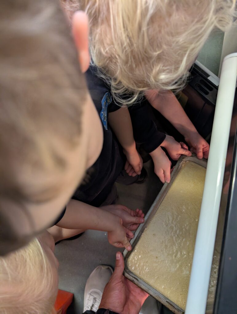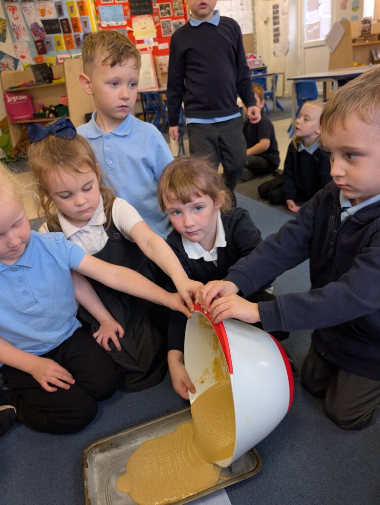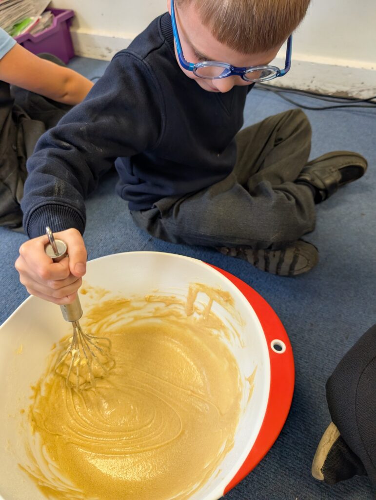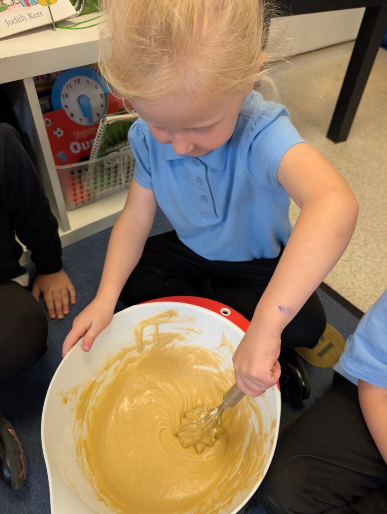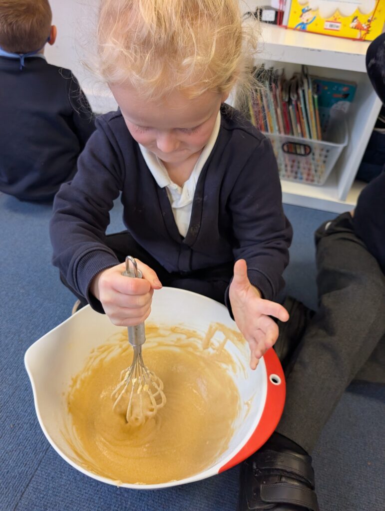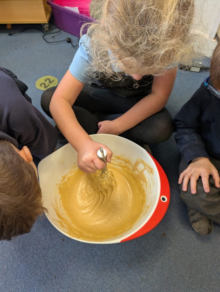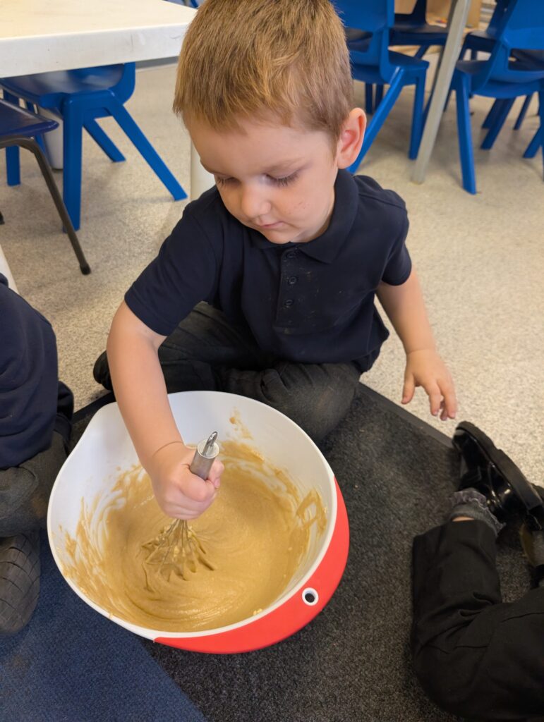 Having had our expert baker in this morning teach us how to bake a cake. We made our own cake this afternoon. The children used some brilliant descriptive language for the mixture: squidgy, slimy, sloppy, gooey. Then we popped it in the oven and we’re happy with the outcome! #LovePlover