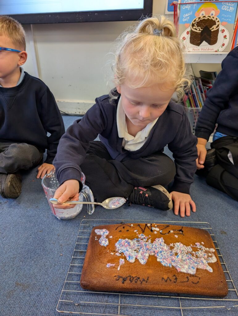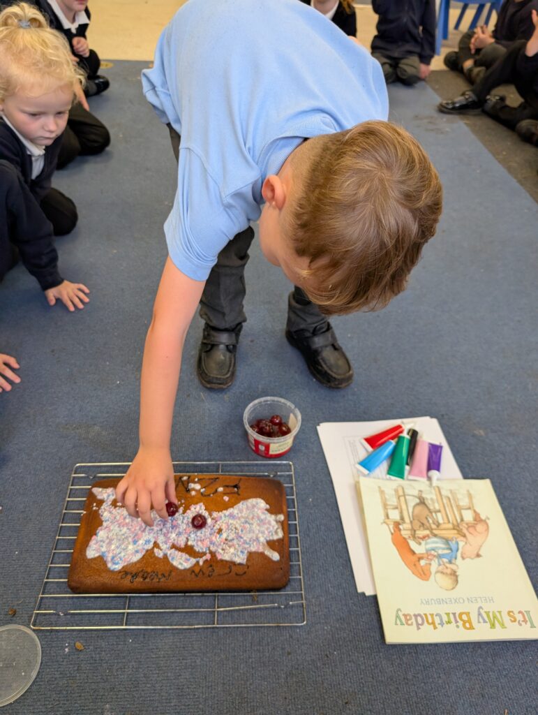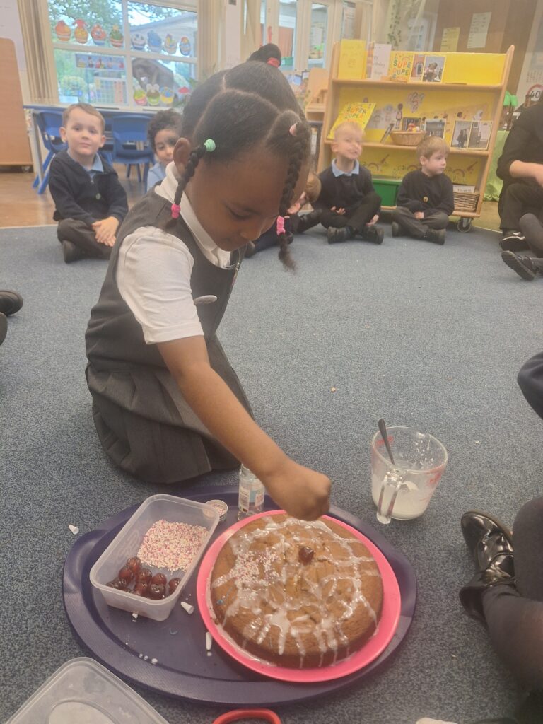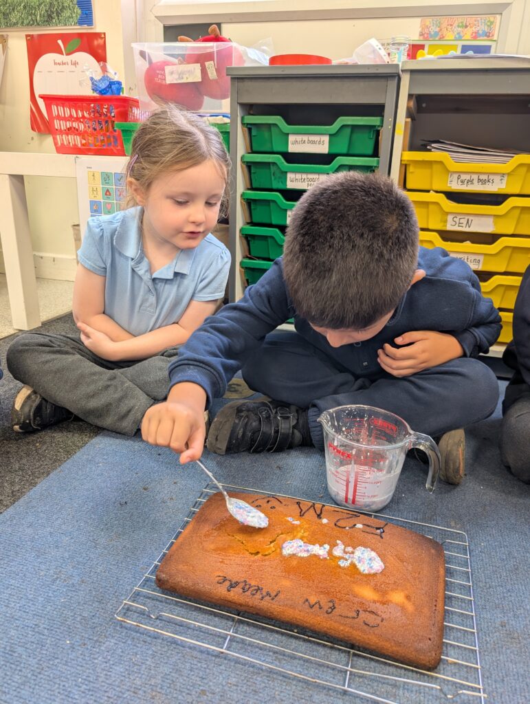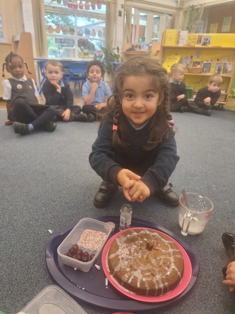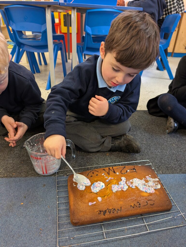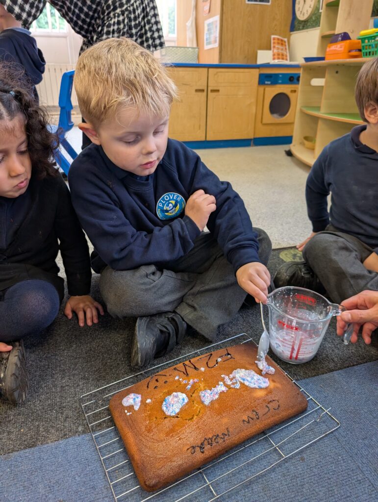 Thank you to Grandma Shereen, our expert baker who helped bake a cake with F2 this morning. We used ‘Its my birthday’ book to help get the correct ingredients. Then our book ‘Cake’ to make and decorate our cake. #LovePlover