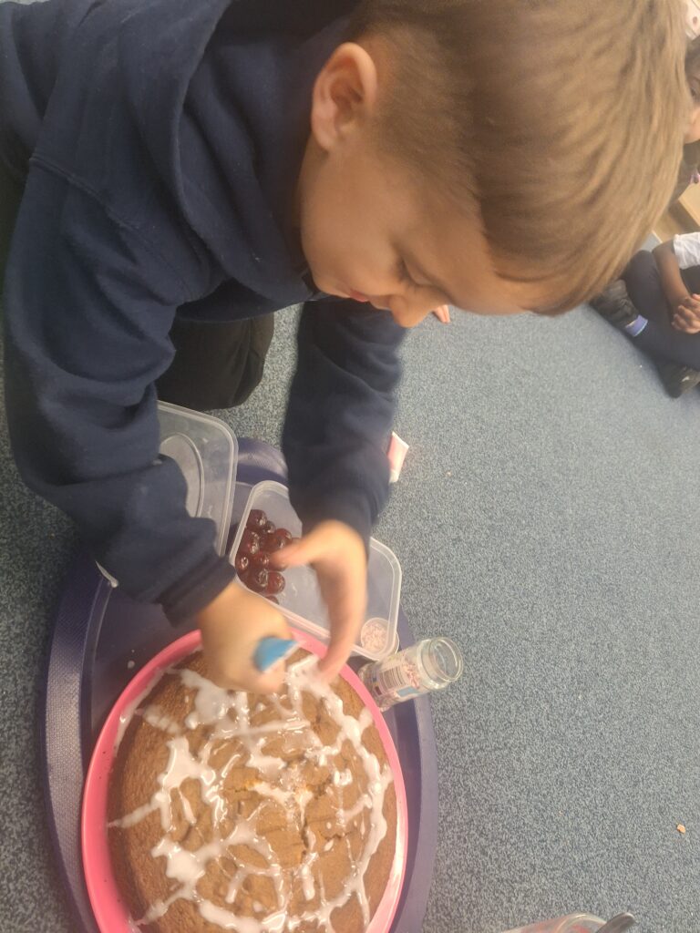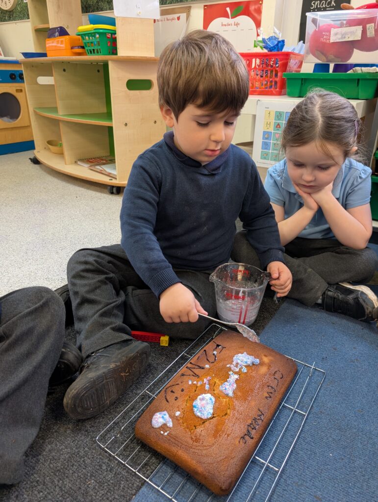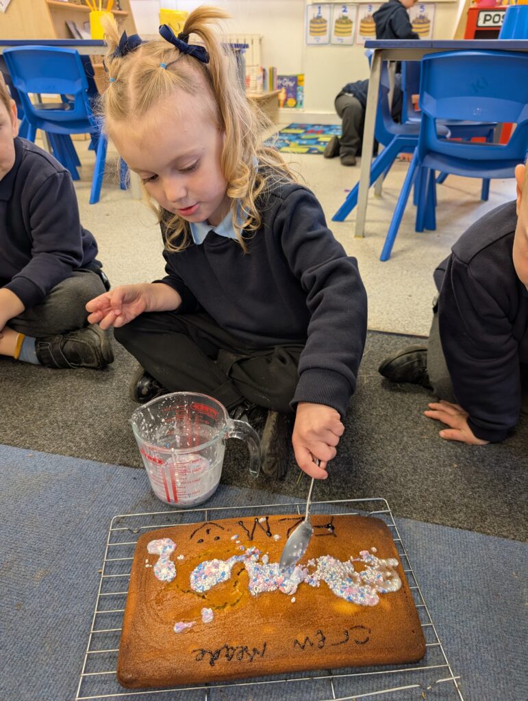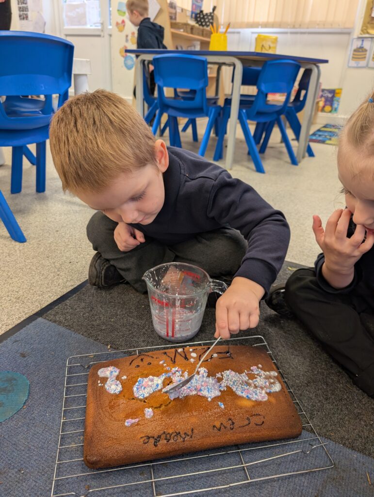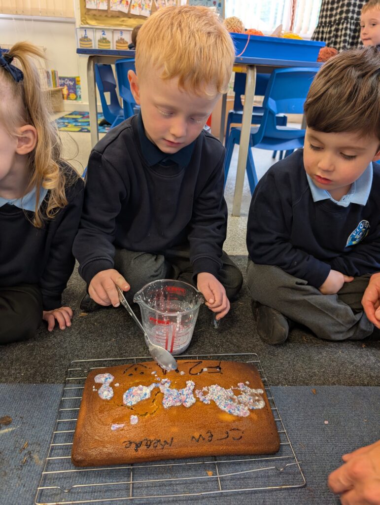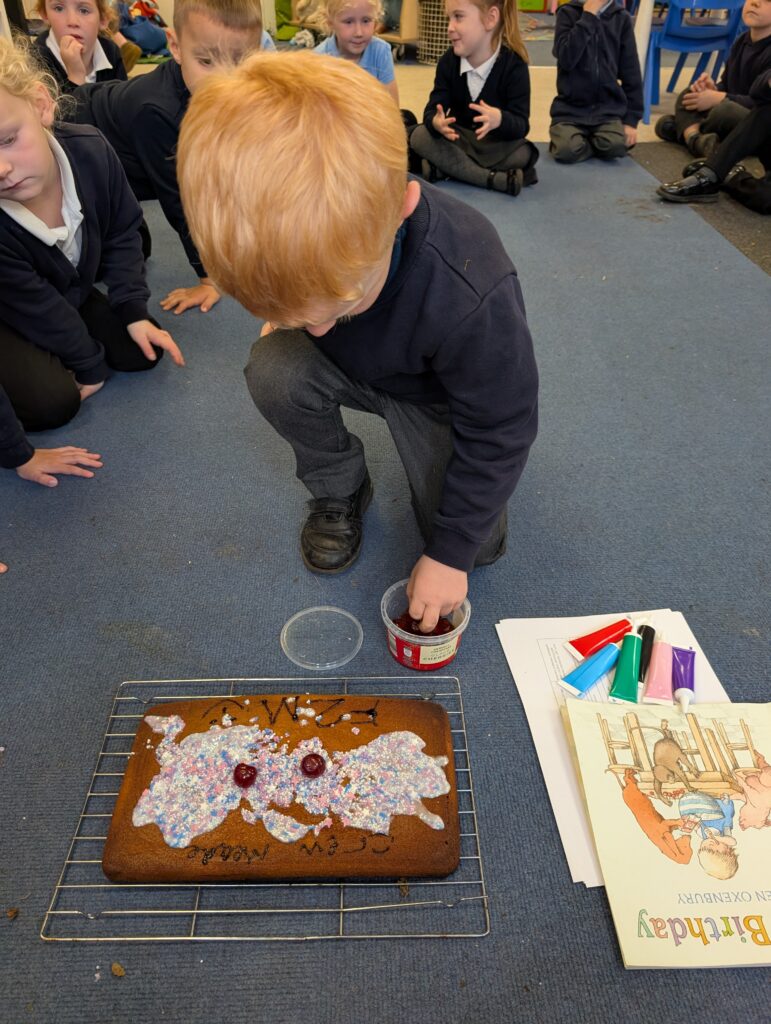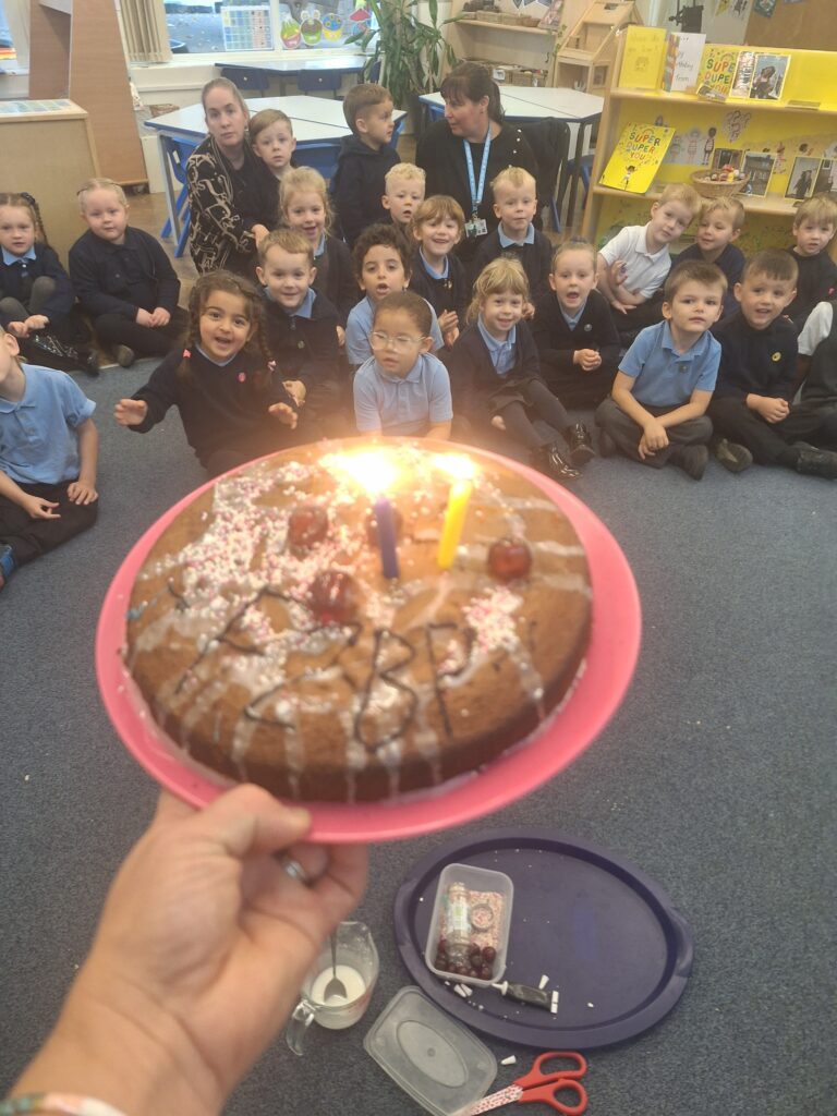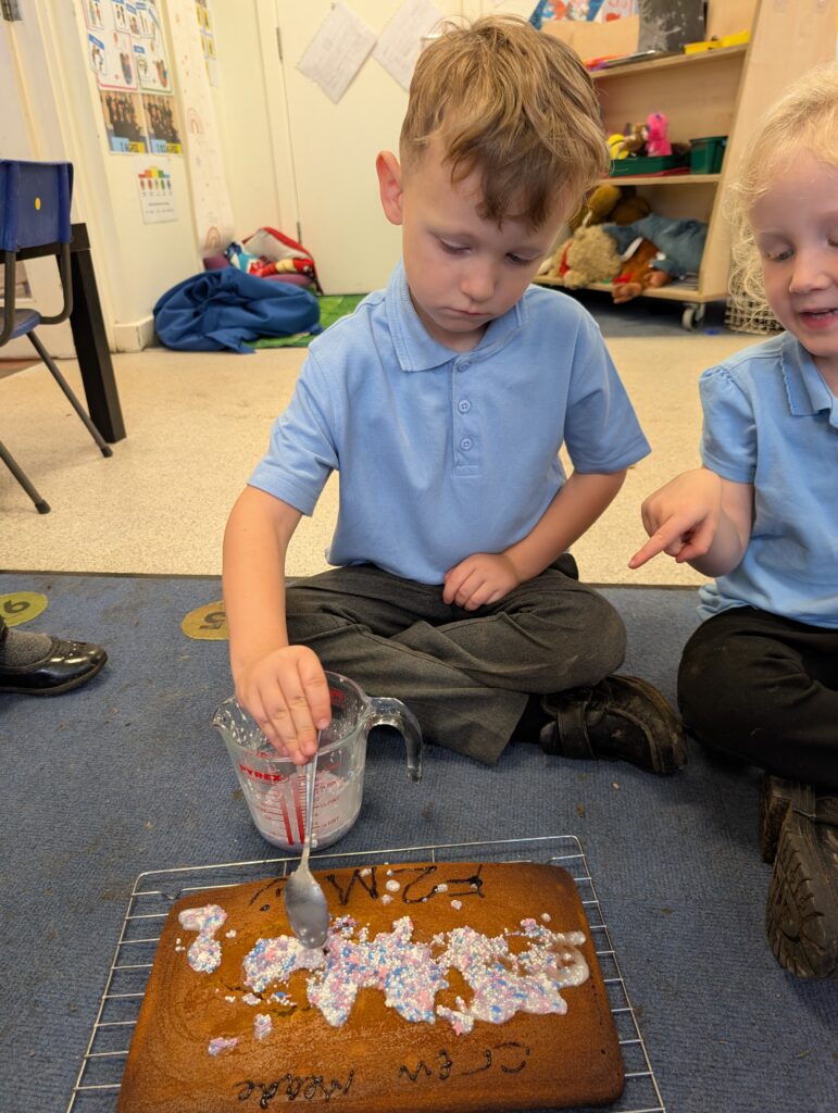 Thank you to Grandma Shereen, our expert baker who helped bake a cake with F2 this morning. We used ‘Its my birthday’ book to help get the correct ingredients. Then our book ‘Cake’ to make and decorate our cake. #LovePlover