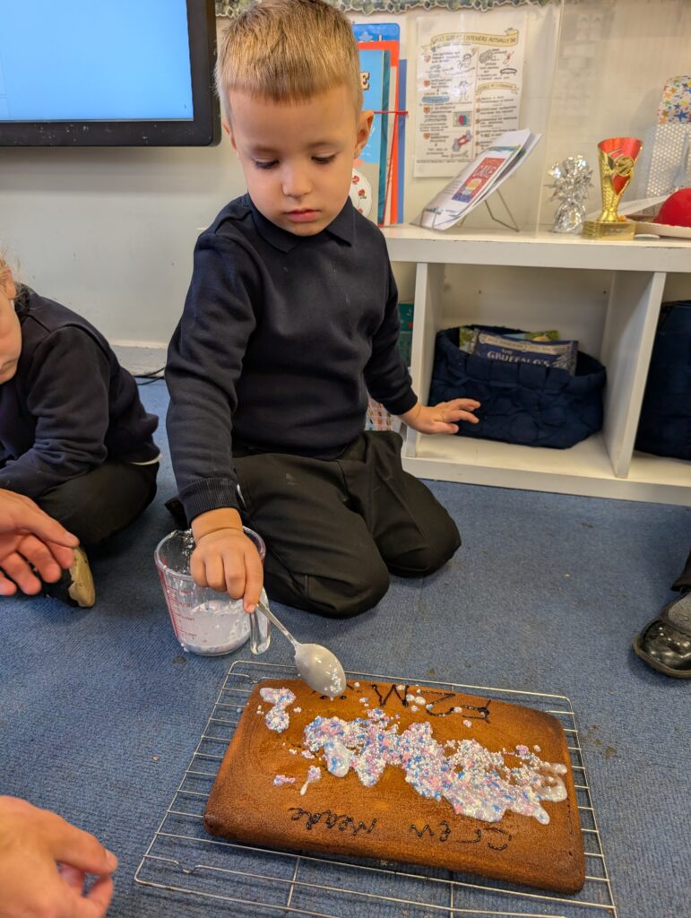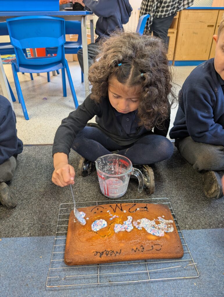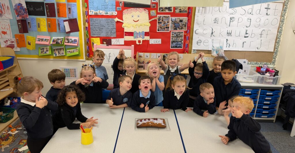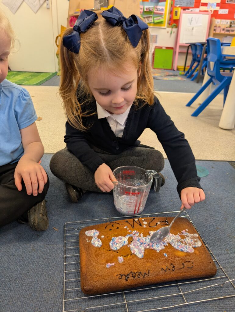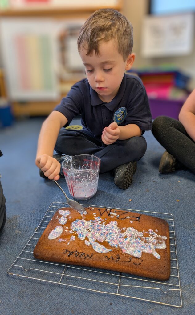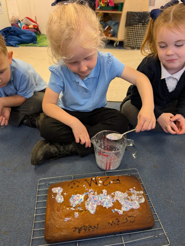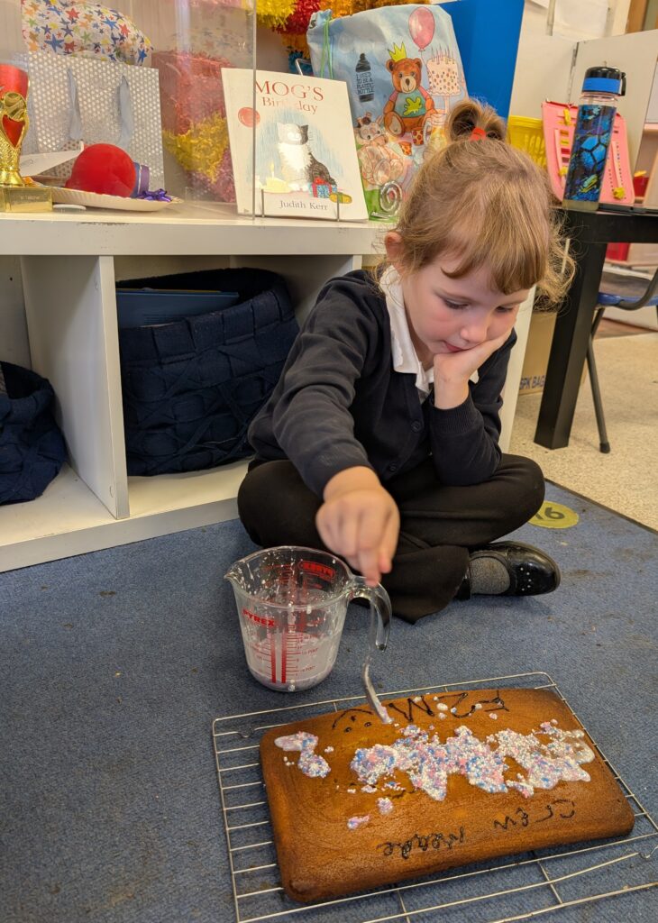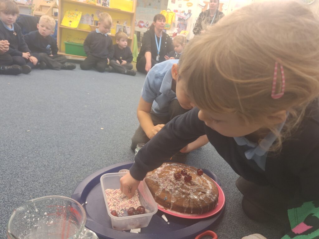 Thank you to Grandma Shereen, our expert baker who helped bake a cake with F2 this morning. We used ‘Its my birthday’ book to help get the correct ingredients. Then our book ‘Cake’ to make and decorate our cake. #LovePlover