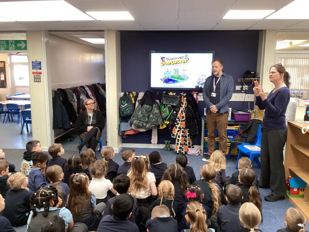 Phil Sheppard kindly came into school to share his expertise as a local author and illustrator. He has written a children’s book all about Doncaster and he came to share how he went about creating the book. Phil shared his journey to becoming an author and answered lots of brilliant questions about his ‘Discover Doncaster’ book. Thanks, Phil!