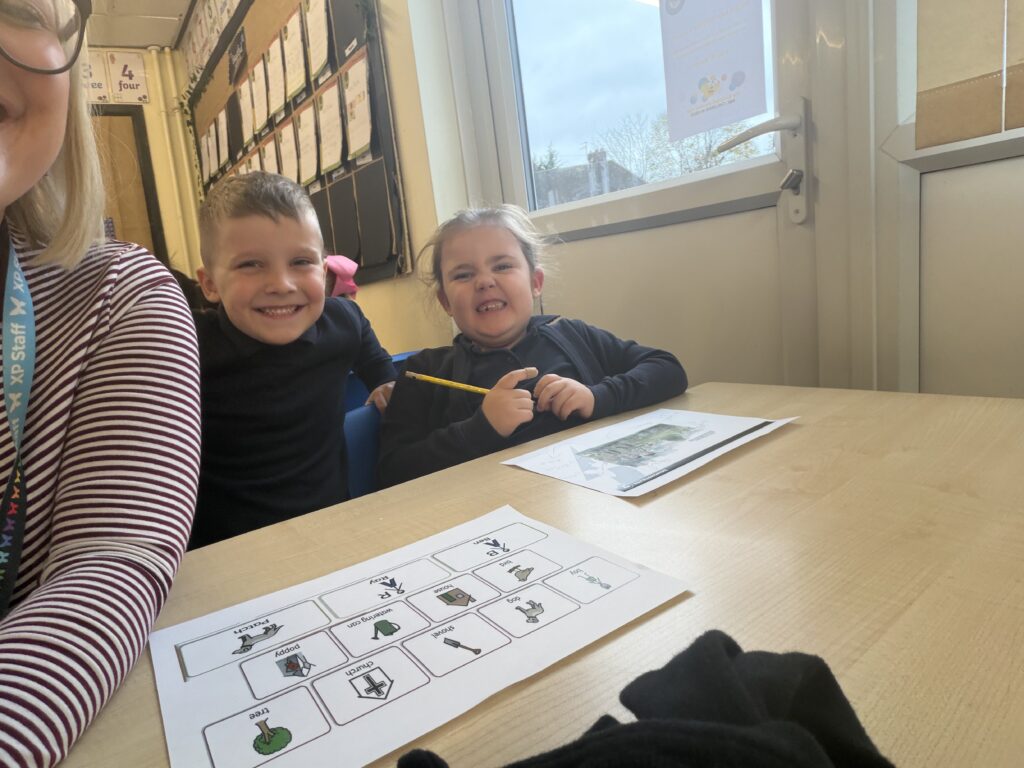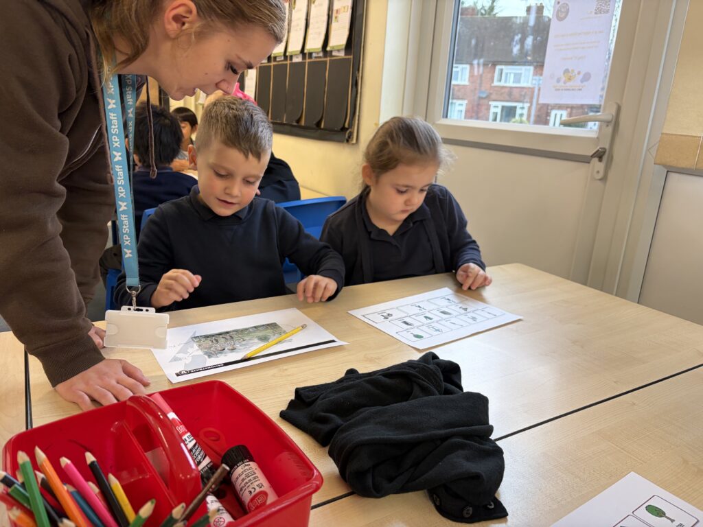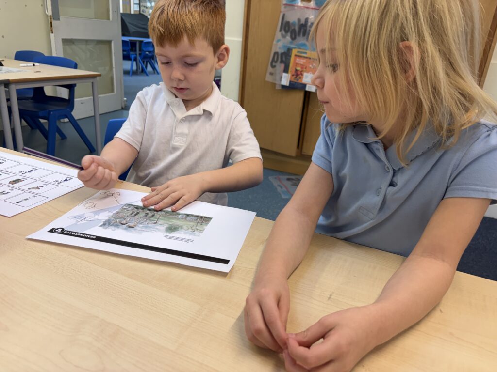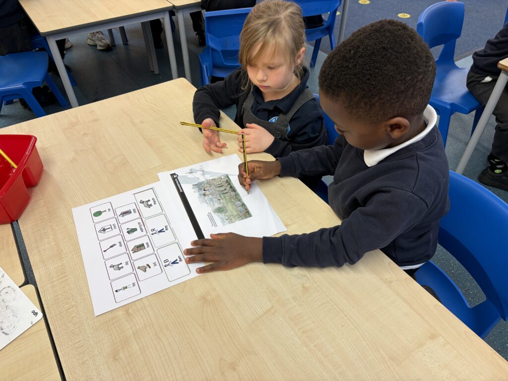To add texture and creativity, the children used string to form the grass in the foreground, giving the scene a unique and tactile finish.