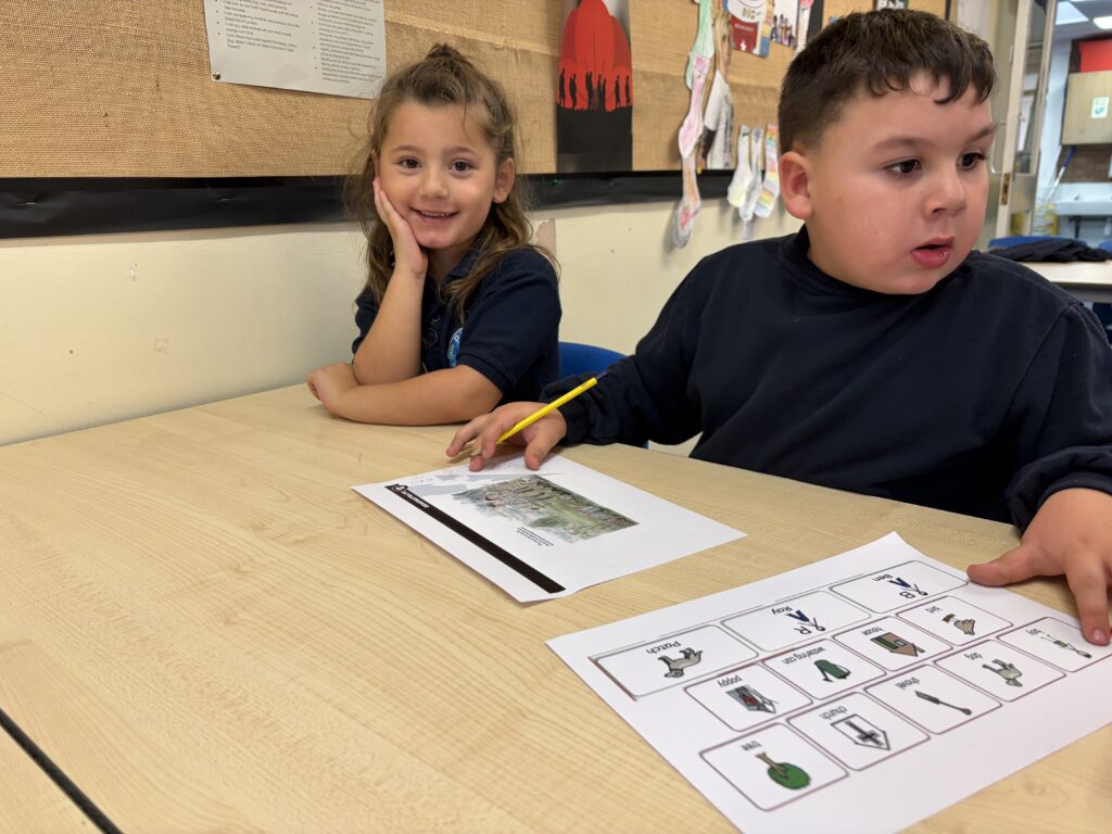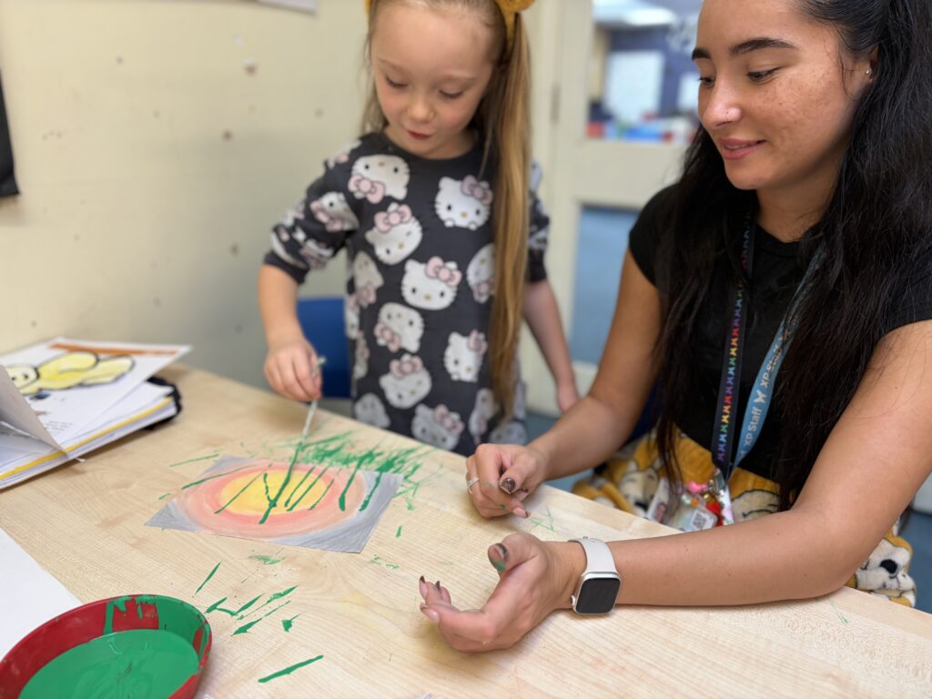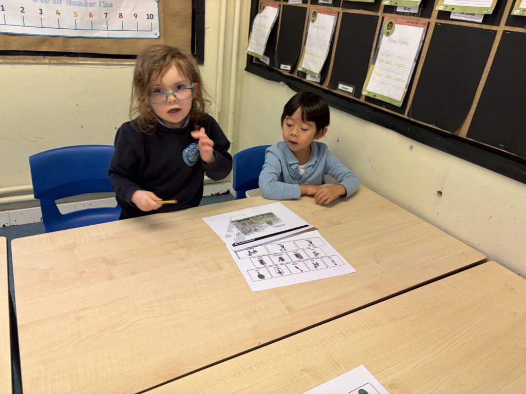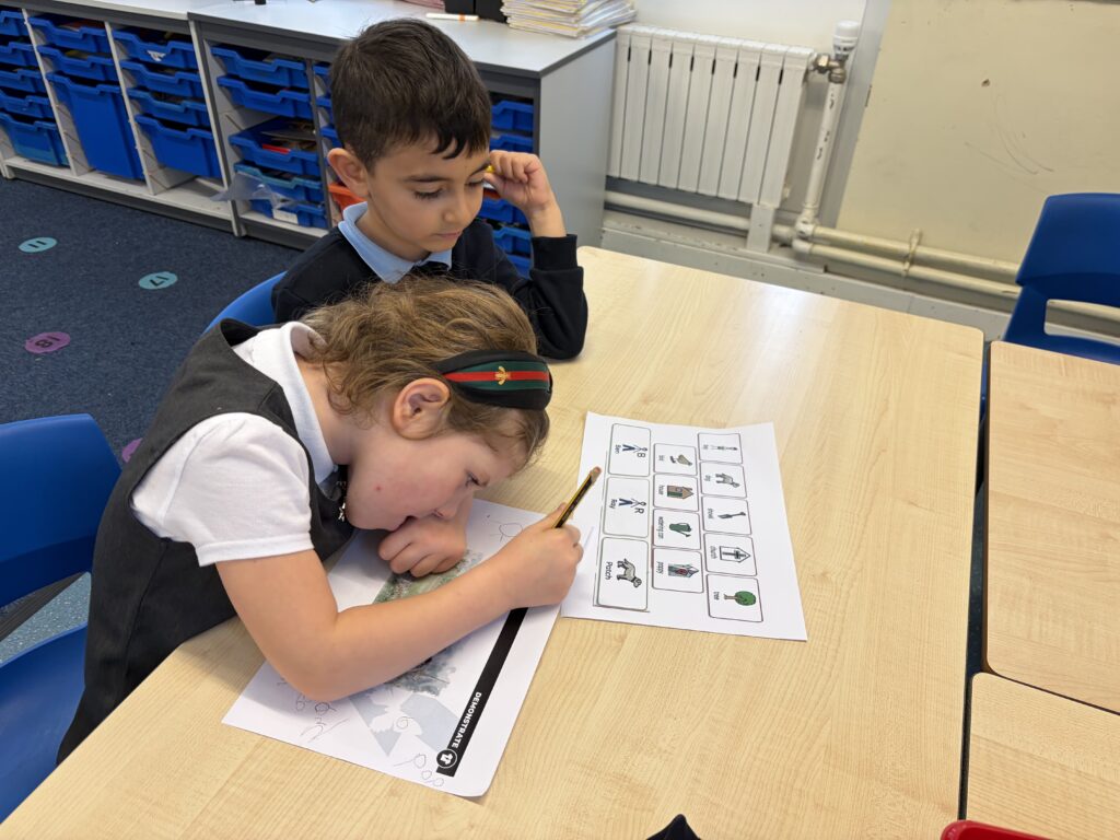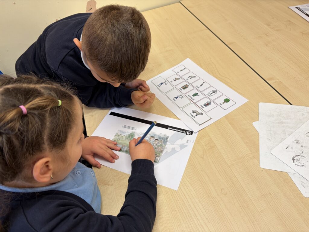 To add texture and creativity, the children used string to form the grass in the foreground, giving the scene a unique and tactile finish.