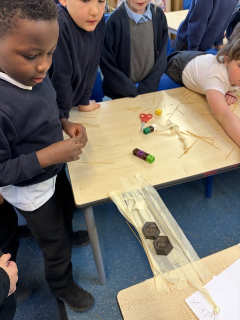 The results were amazing! All five groups created very different bridge designs, and every single one was successful in holding the weight. A fantastic achievement and a brilliant example of teamwork in action.