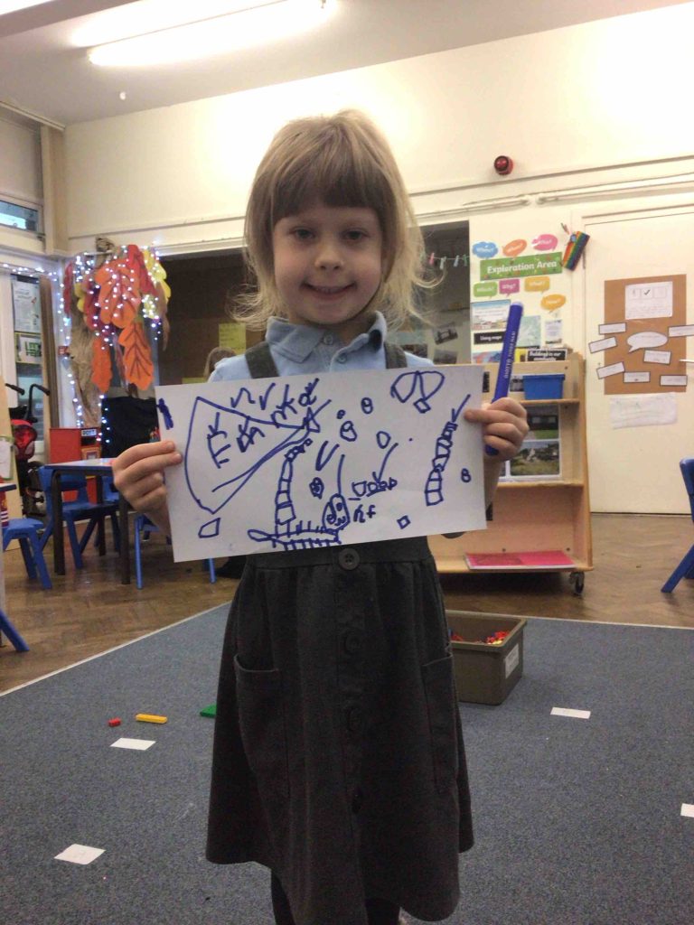 Emma remembered what she had been learning in maths and challenged herself to draw the Numberblock 8 and then write it.
