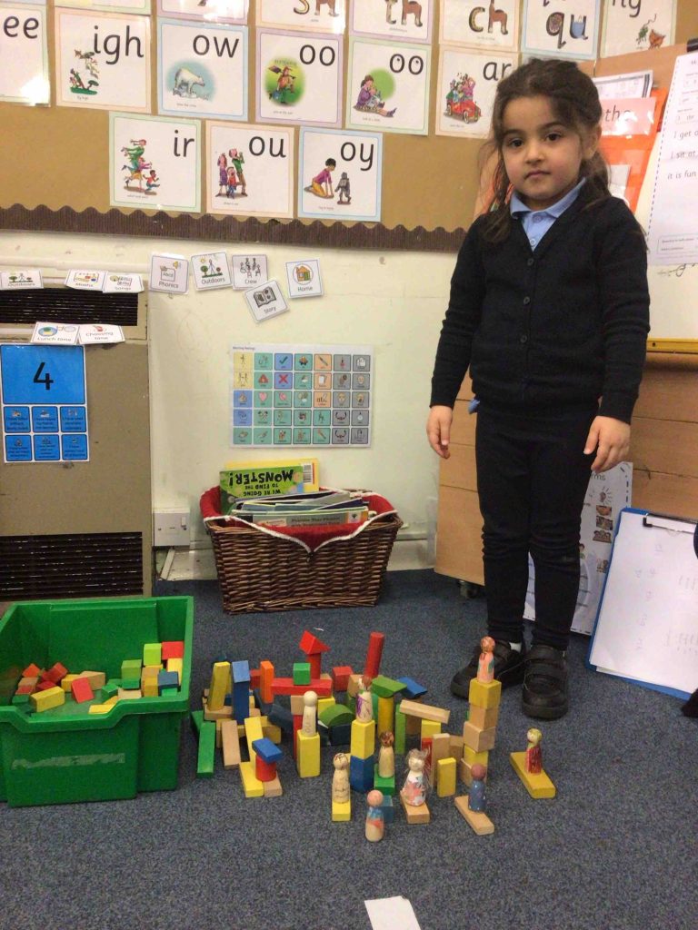 James made a vets using blocks. He added to his learning using people. He also stood up infront of the whole class to share his learning showing courage.
