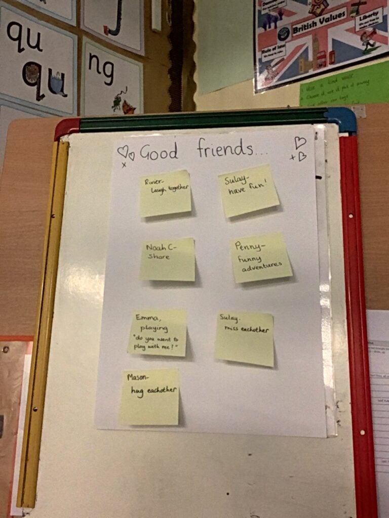 We have been learning about what makes a good friend and how everyone in our class crew is our friend. We know what a good friend acts like. We made an anchor chart all about it. We ended our crew session having fun and making our friends laugh with silly faces! #loveplover