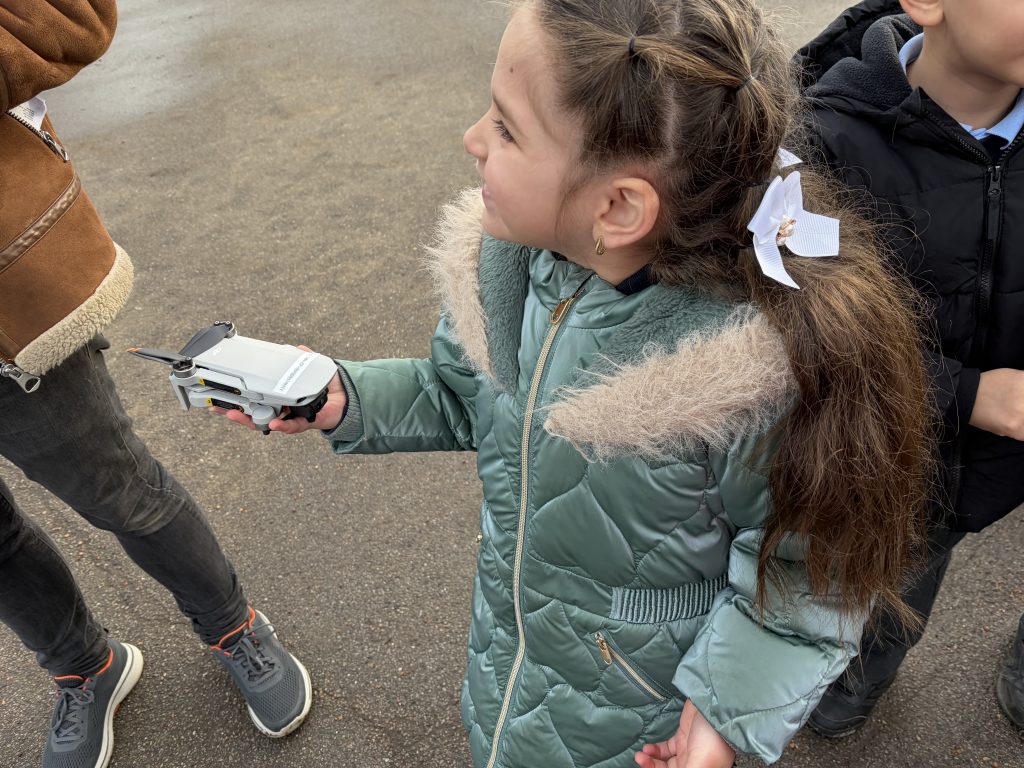Geoff demonstrated how the drone works and shared some of the photographs he had taken. Together, we explored the aerial footage and discussed what we could see from above, noticing features that look very different when viewed from the sky. The children were fascinated by this new perspective and asked lots of thoughtful questions.