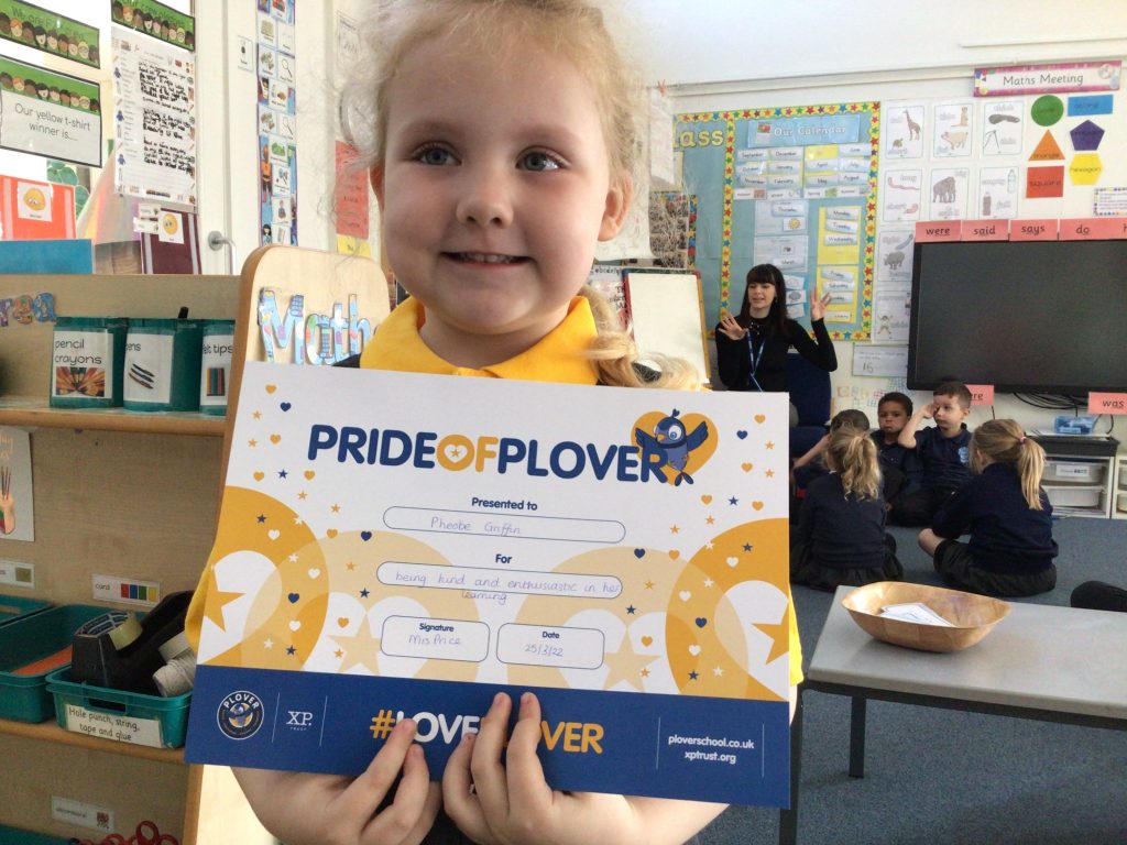 Well done to Pheobe for earning our yellow t-shirt today. She has worked really hard especially on reading and has been very kind.