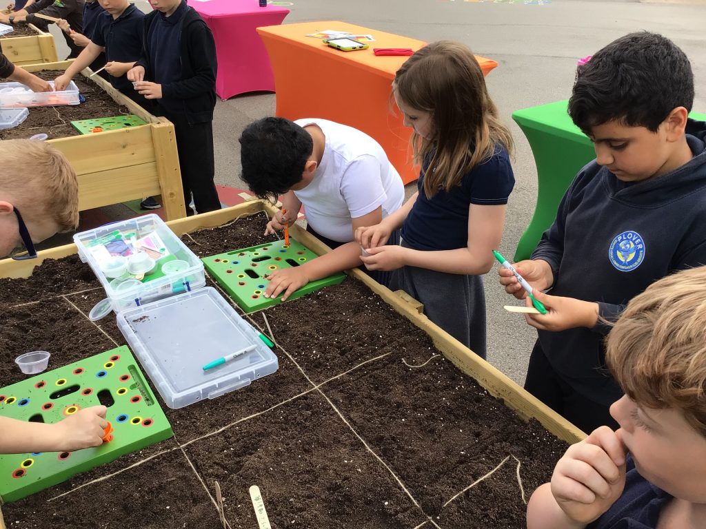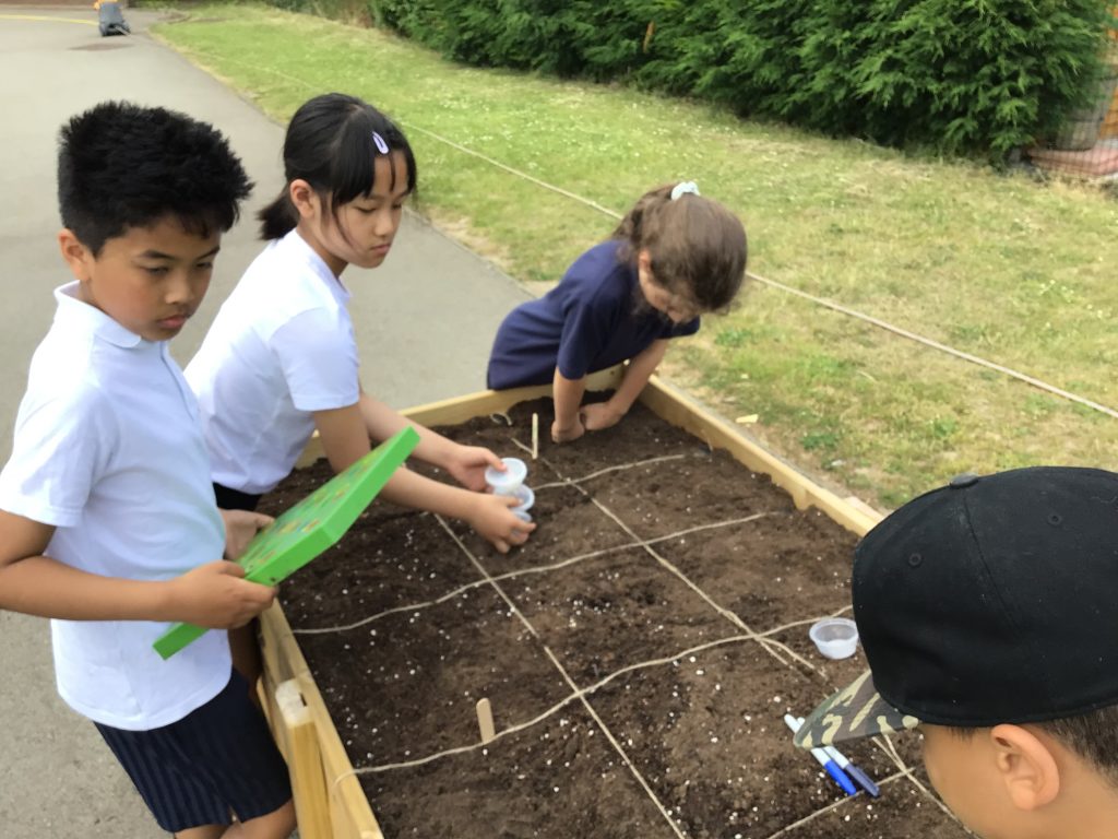 Today, the children have marked out their planting area and planted some peas. They have learnt how important it is to water the plants and will be continuing to look after the plants throughout the week.