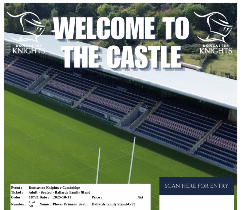 FREE Doncaster Knights Rugby Tickets Saturday 11th October 6th October 2025Joshua Meade We have 50 FREE Adult and Child rugby tickets for this Saturdays match, please take them from the main reception as a first come first serve.