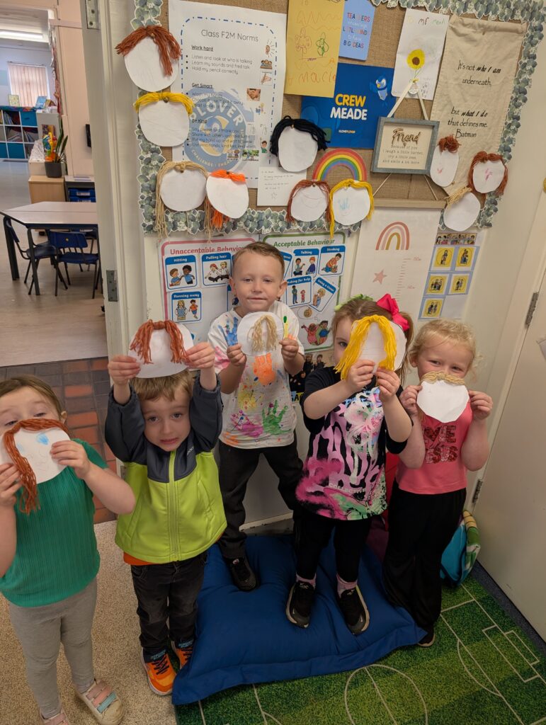 We used a mirror to notice what colour hair and facial features we had. Then used our cutting skills to cut out and make our faces and hair. #LovePlover