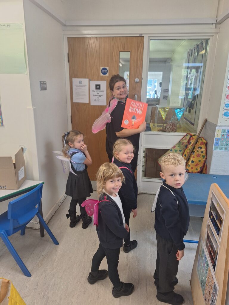 Today, we donned our wings and explored Mr Meade and Mrs Bubb’s favourite story- Perfectly Norman. The children loved pretending to be Norman and flying in their wings. They listened to the story beautifully and talked and answered questions really well. We ❤️ Mondays when we get to be STORY EXPLORERS! Perfectly Charlie remembered that the main character had a dog. PERFECTLY EMMA said that he was sad. Perfectly Nevaeh talked a lot about what was happening all the way through the story and Perfectly Rivier knew he was going t take his coat off at the end and feel happy!