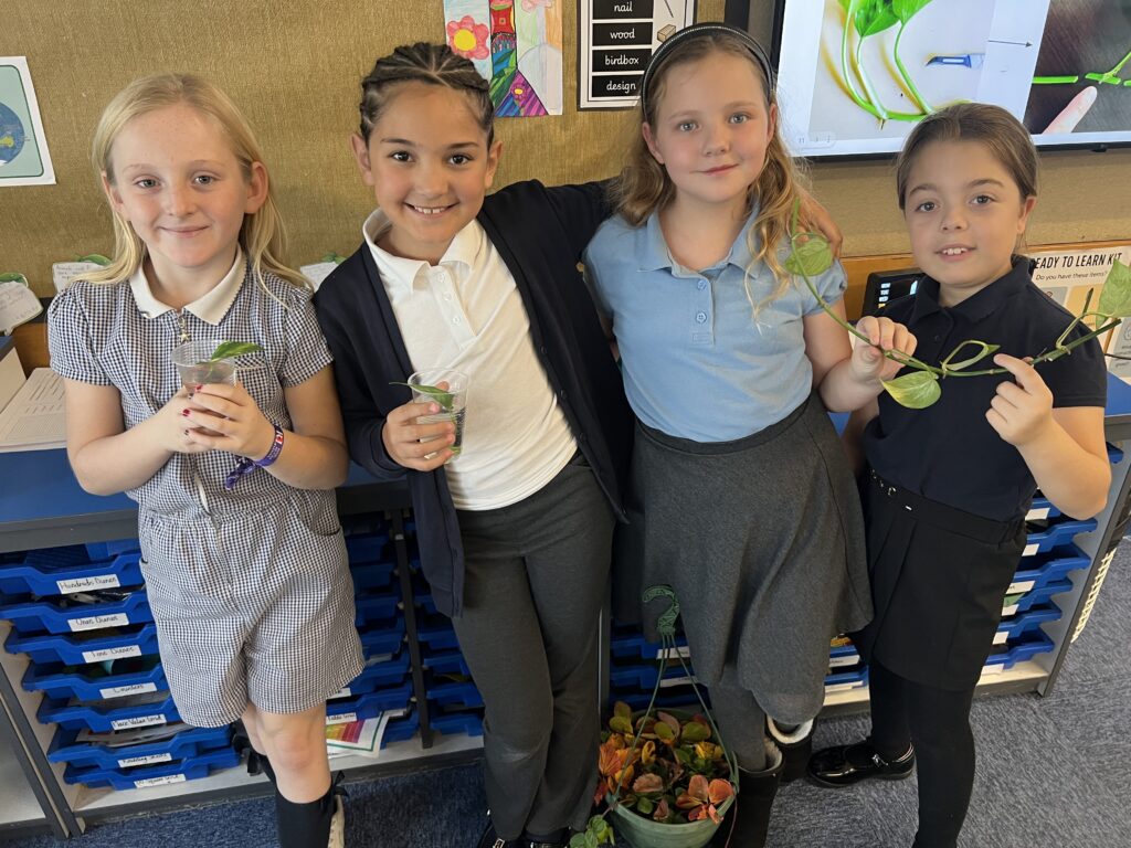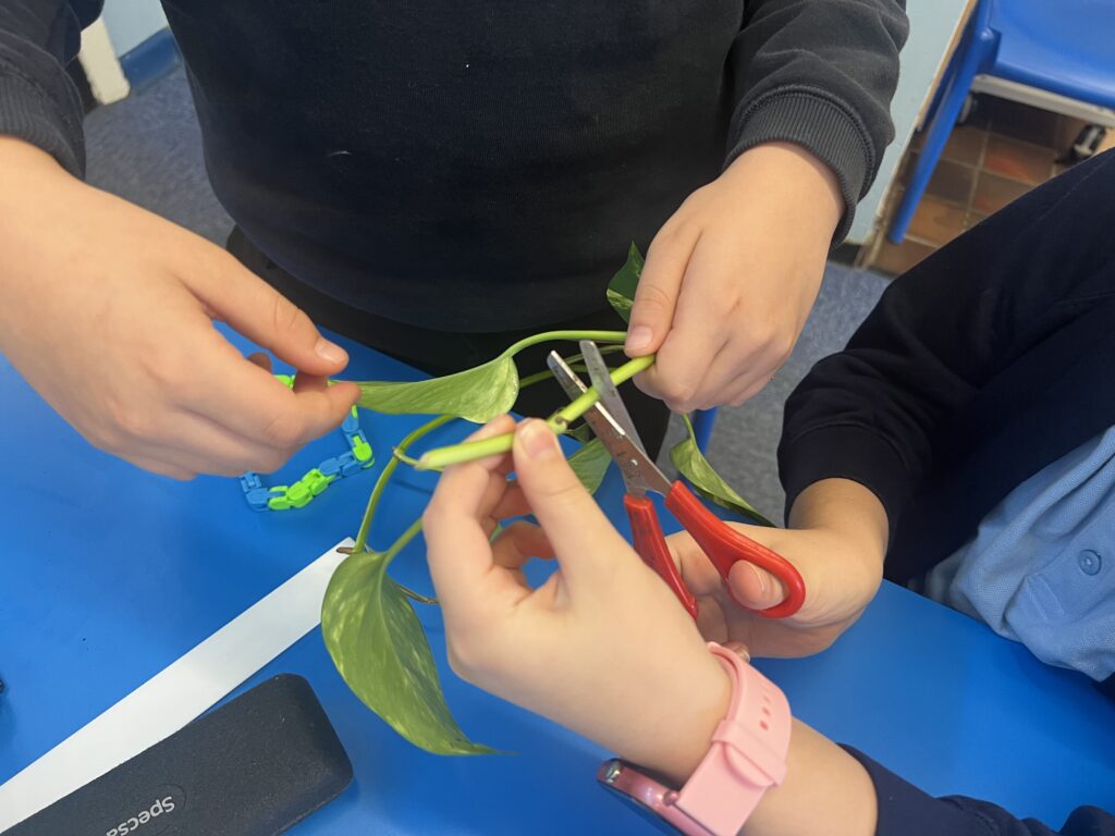 Today, children in year 5 learned about asexual plant reproduction – how new, genetically identical clones of plants, can be made. We learned about how potatoes, garlic and strawberries can all produce new plants through their tubers, bulbs and runners. Finally, we took cuttings of Pothos – a jungle plant – and placed them in water. We hope to see them develop roots and have some lovely plants for the classrooms once they’re ready!