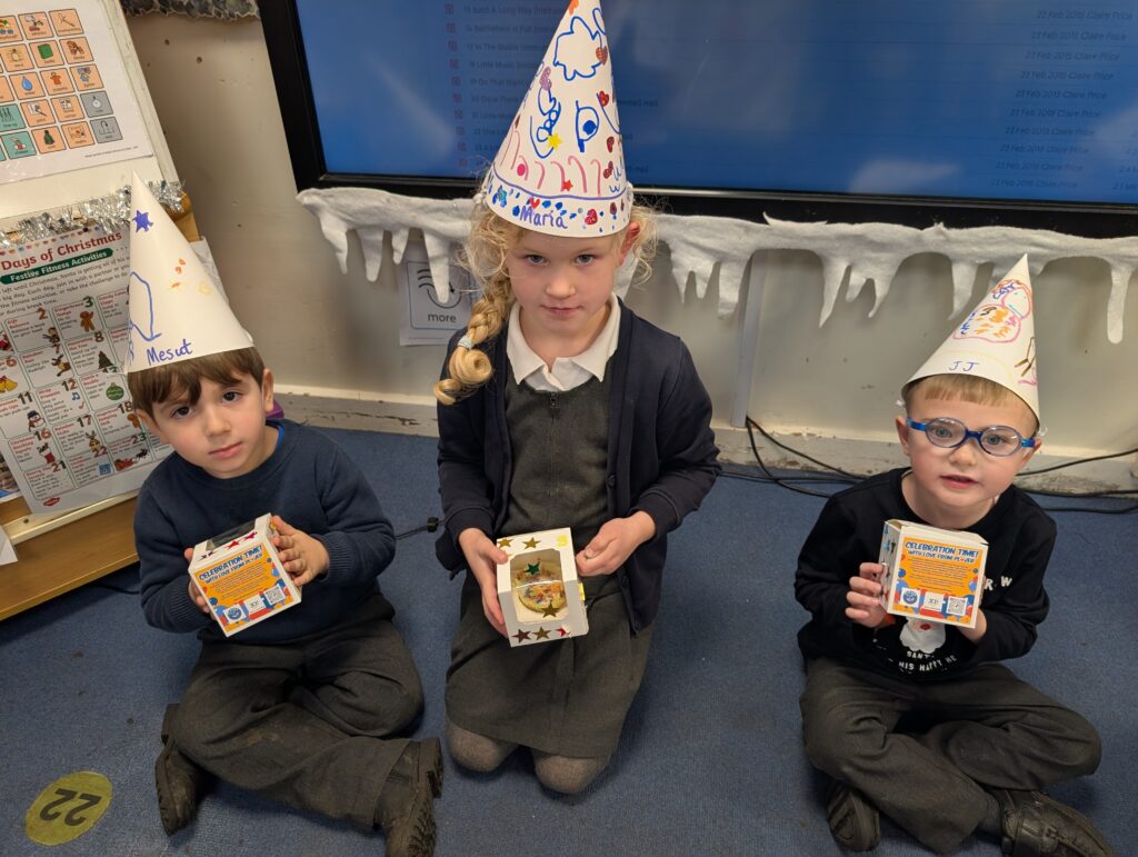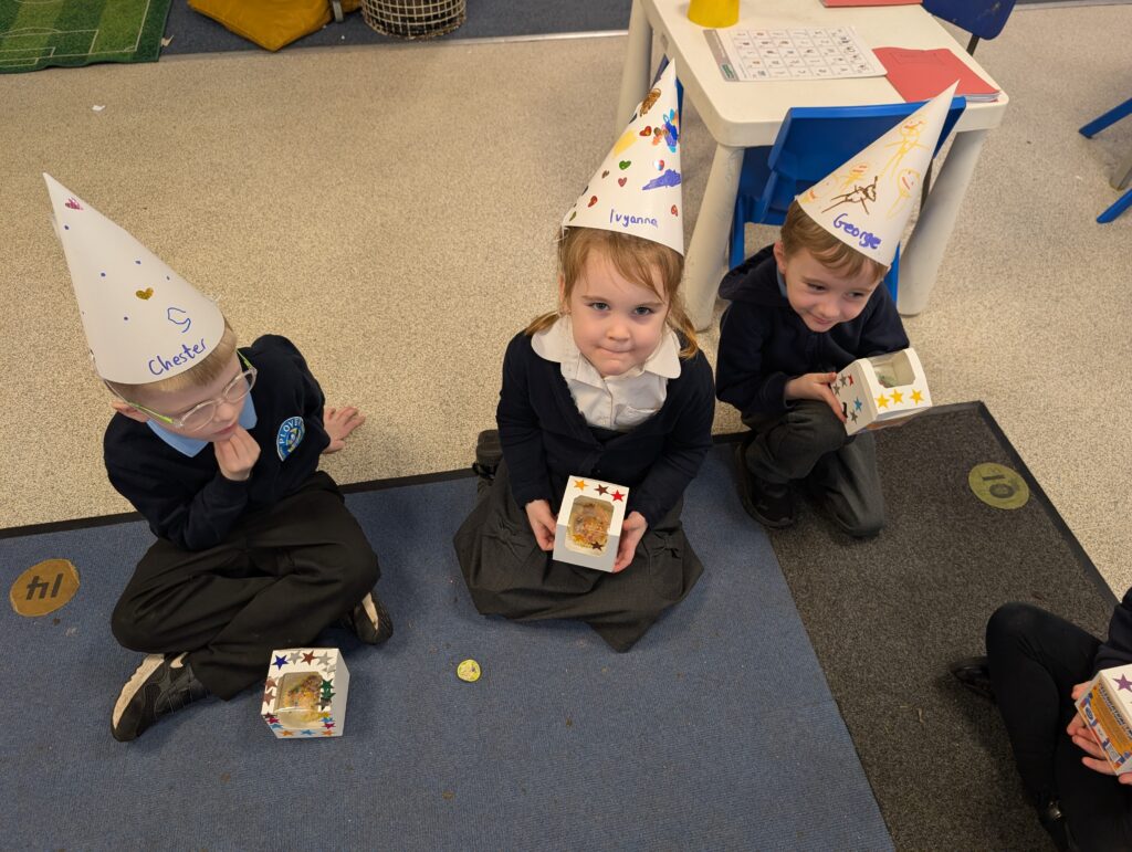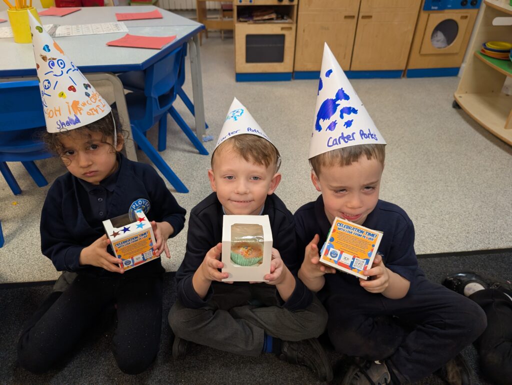 We decorated ours and the special guests cupcakes with icing and sprinkles. We spoke, sang and danced to celebrate our expedition. Our final products included party hats, cup cakes, cupcakes boxes and a photo frame, record by all of EYFS! #LovePlover