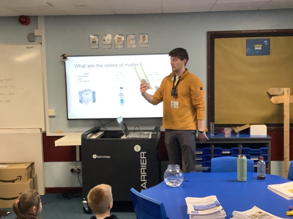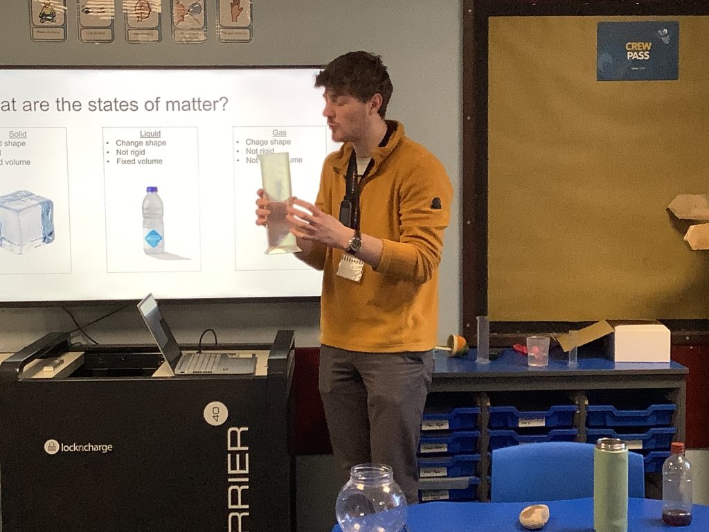 Year 4 were visited by Harry – our expert scientist – who kindly launched the science topic that we will be studying during this expedition. He introduced the children to states of matter: solids, liquids and gases. We were mesmerised by the video of experiments he prepared for us in his lab at university and have been really inspired by him. When he inflated a balloon right in front of us, without blowing it up in the normal way, gasps were heard from all. I wonder if your children can tell you how Harry did this?