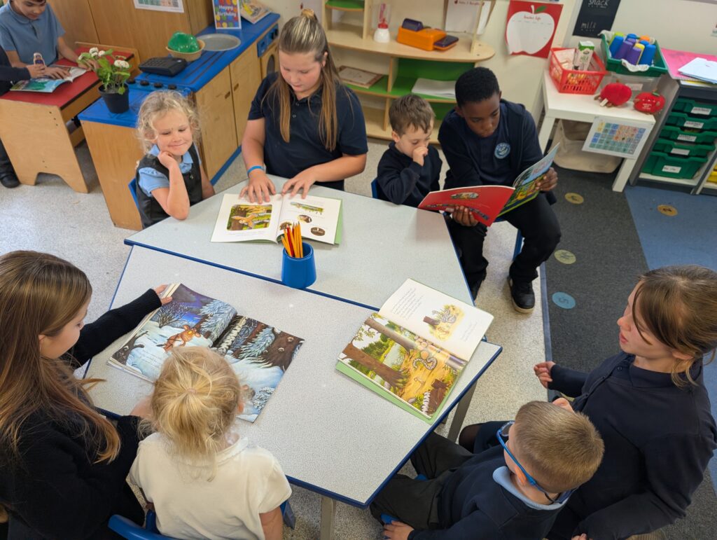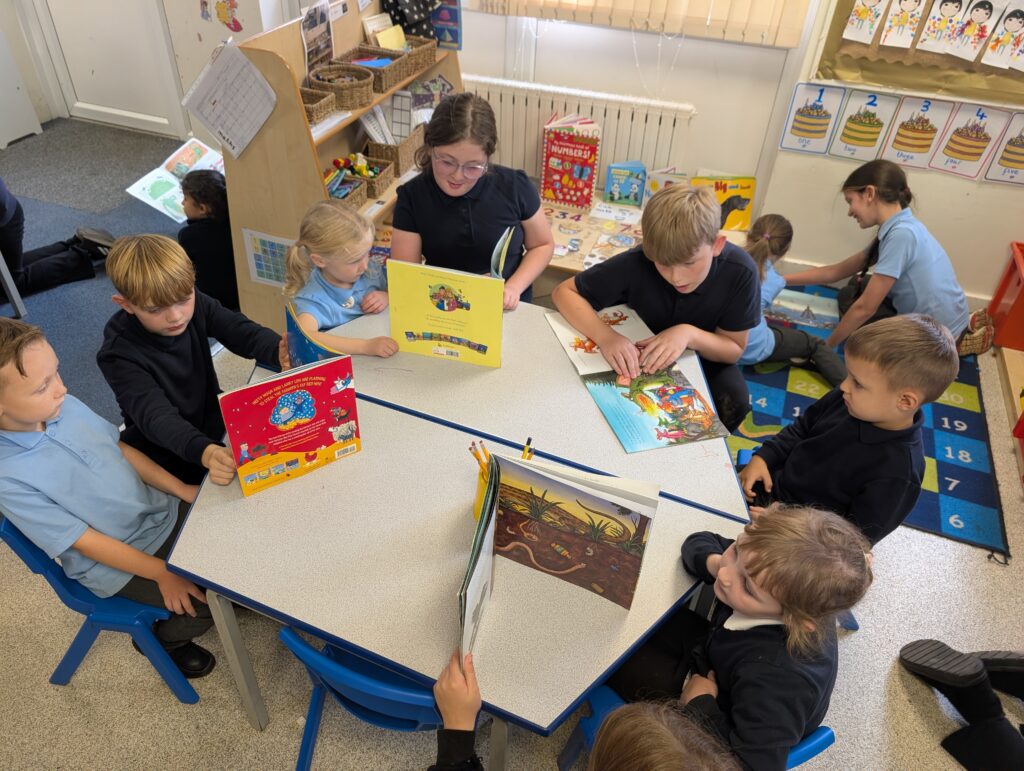 In our snuggle and story crew today, we were joined by year 6. Our F2 children chose a book and a buddy, with which the Y6 children then read to the F2 children. It was a lovely crew session! #LovePlover