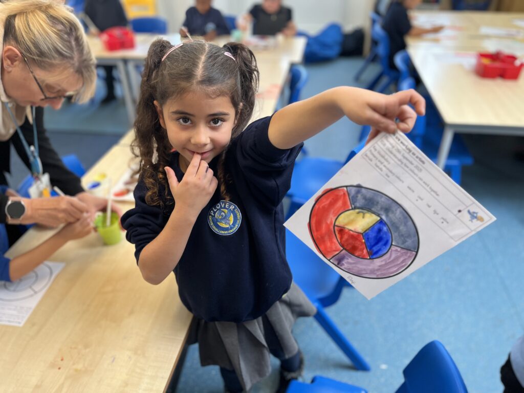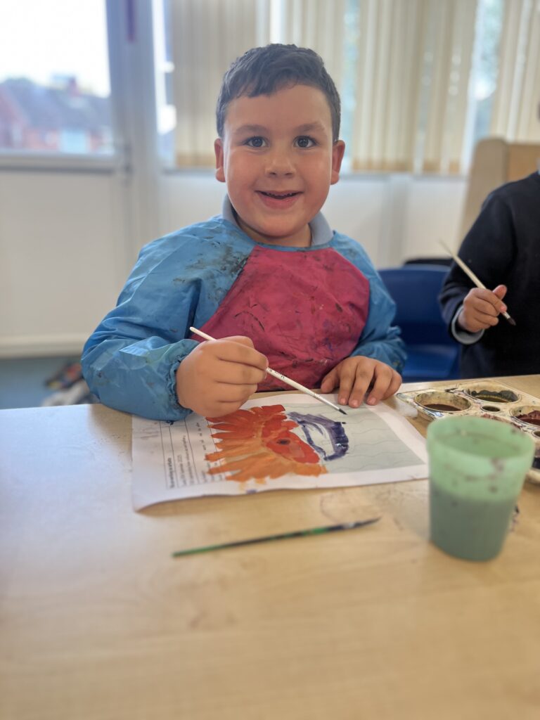 This week we have been working very hard on our painting skills. We learned about the different parts of the paint brush (the toe, the ferrule and the handle). We then talked about Primary and Secondary colours and how they can be made. We then created our own colour wheels.