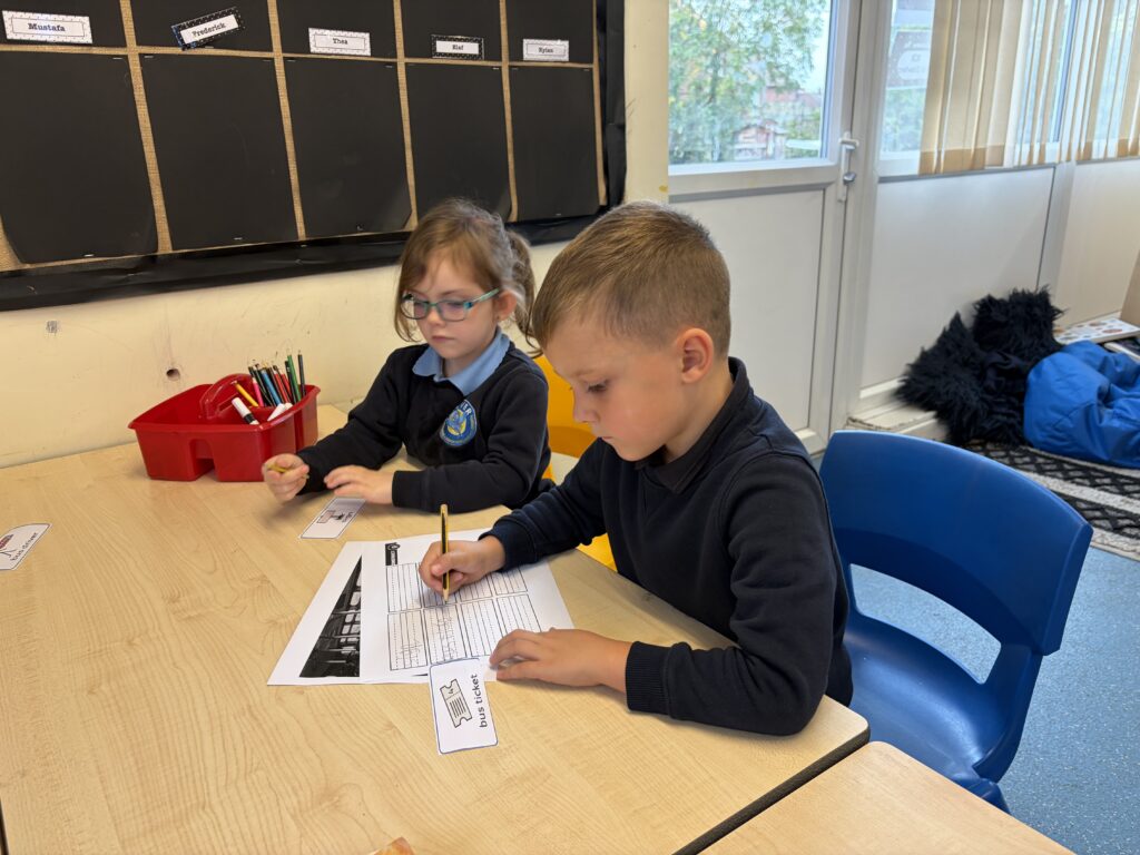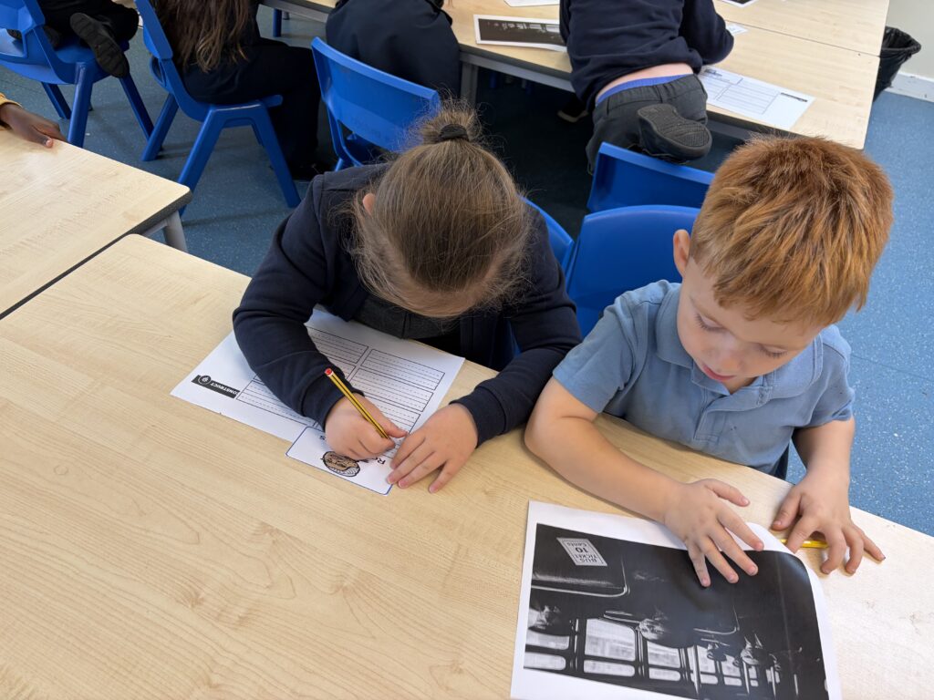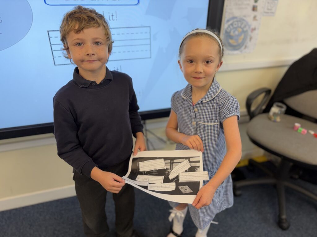 This morning Year 1 received a letter from Rosa Parks asking if they would help her remember what happened on the bus. The children worked collaboratively to write their own labels and stick them to a picture from the scene.
